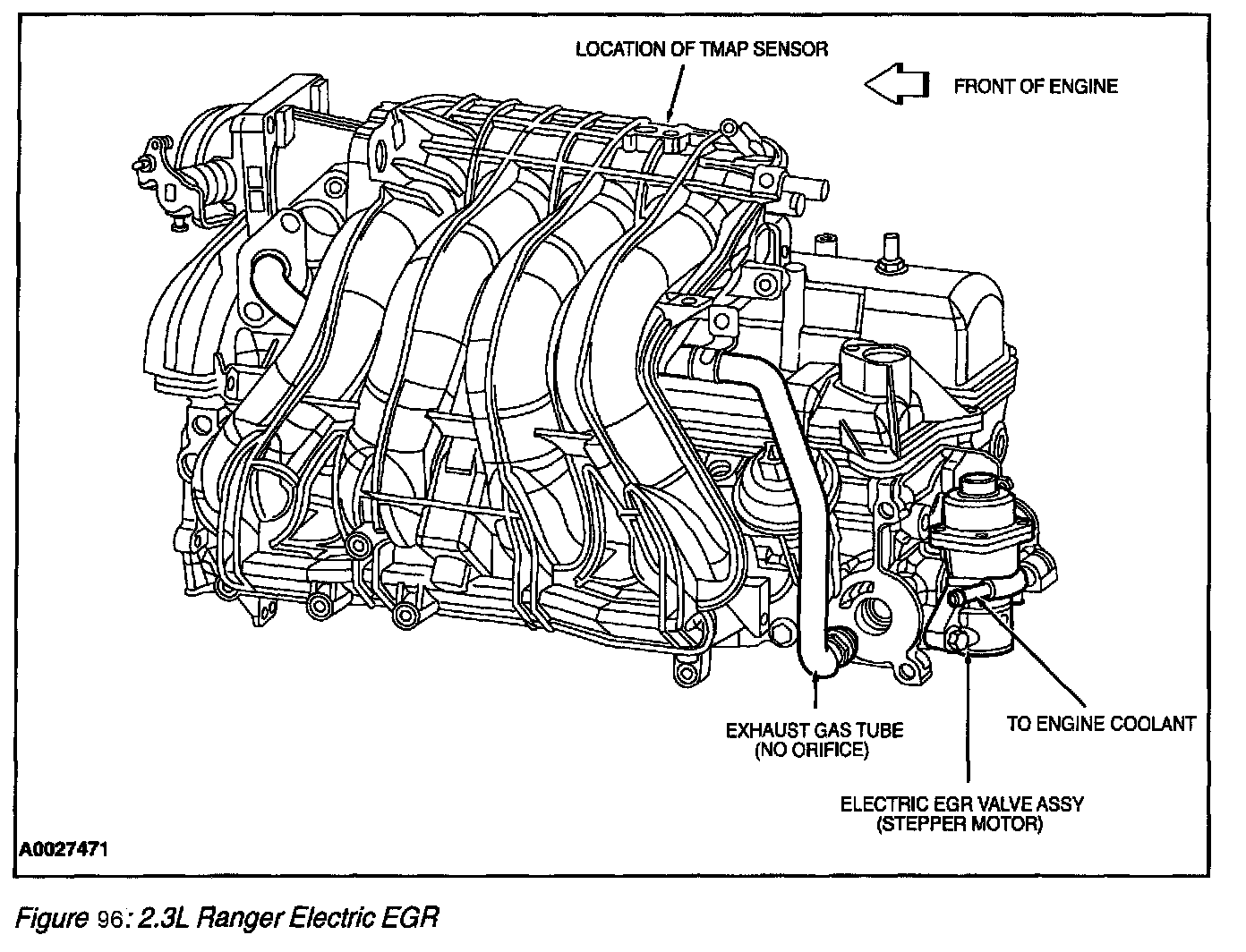 1. The Differential Pressure Feedback EGR system receives signals from the Engine Coolant Temperature (ECT) sensor, Intake Air Temperature (IAT) sensor, Throttle Position (TP) sensor, Mass Air Flow (MAF) sensor and Crankshaft Position (CKP) sensor to provide information on engine operating conditions to the PCM. The engine must be warm, stable and running at a moderate load and rpm before the EGR system is activated. The PCM deactivates EGR during idle, extended wide open throttle or whenever a failure is detected in an EGR component or EGR required input.