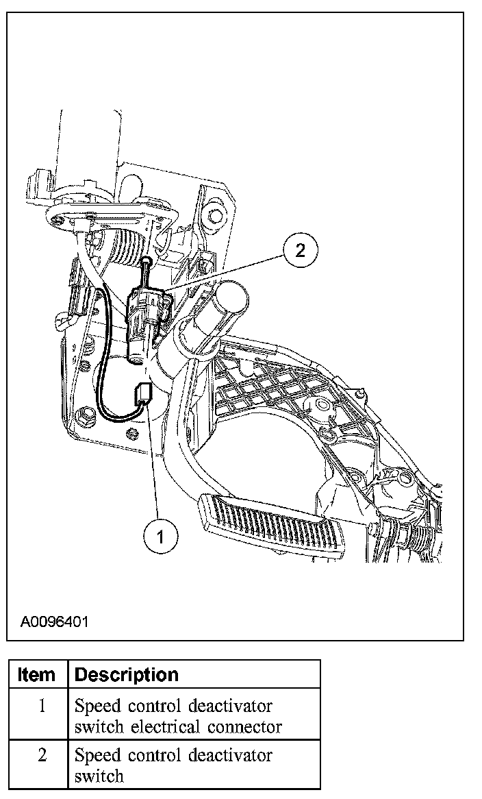 CAUTION: Do not press the pedal when removing or installing the speed control deactivator switch, as the switch will be damaged.