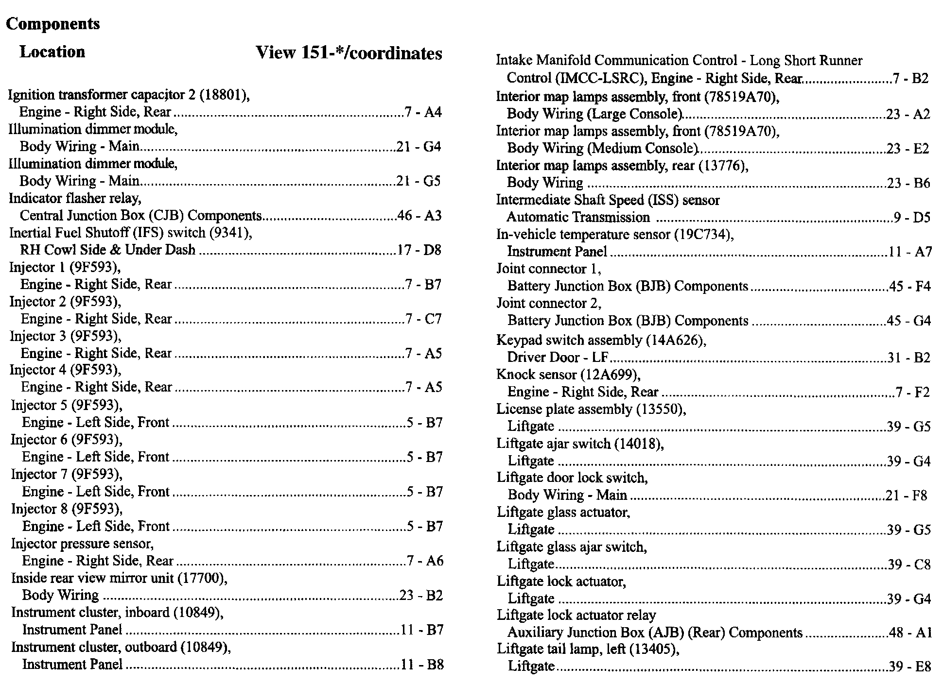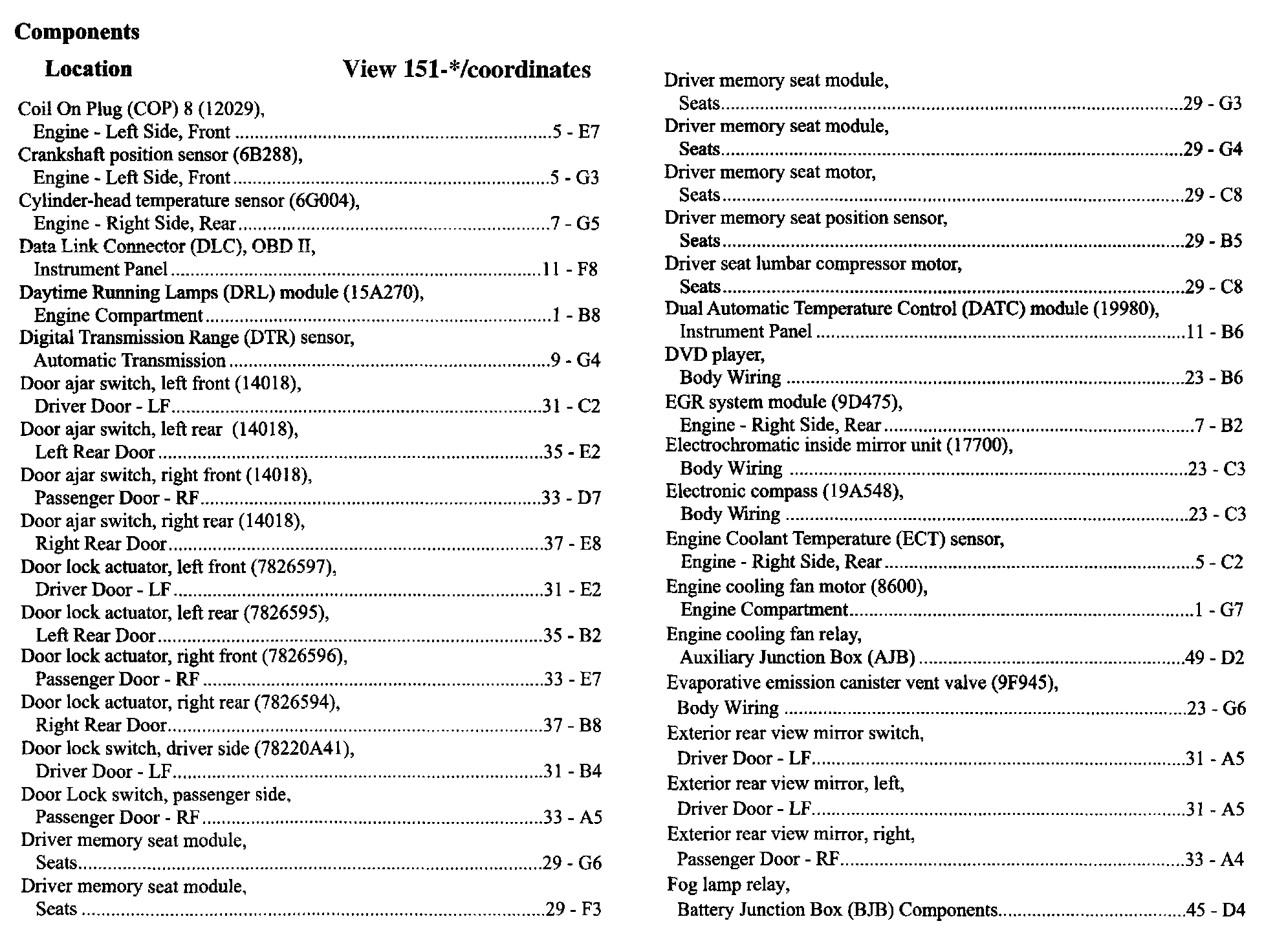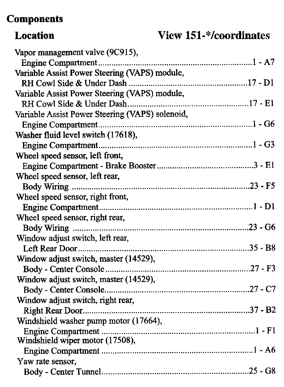Component Location Index