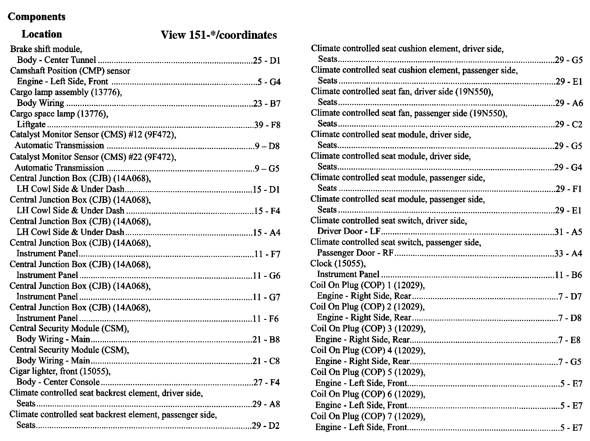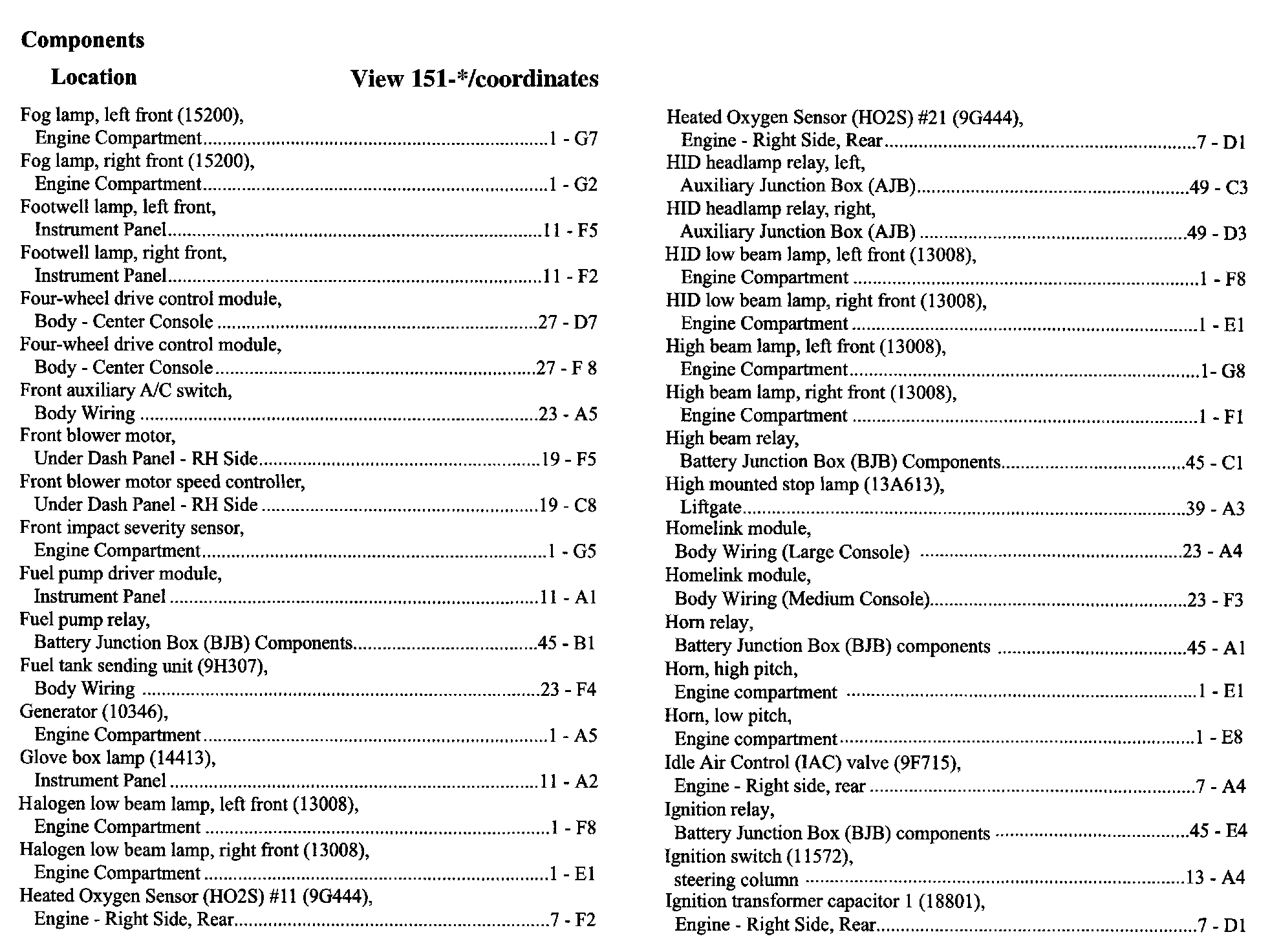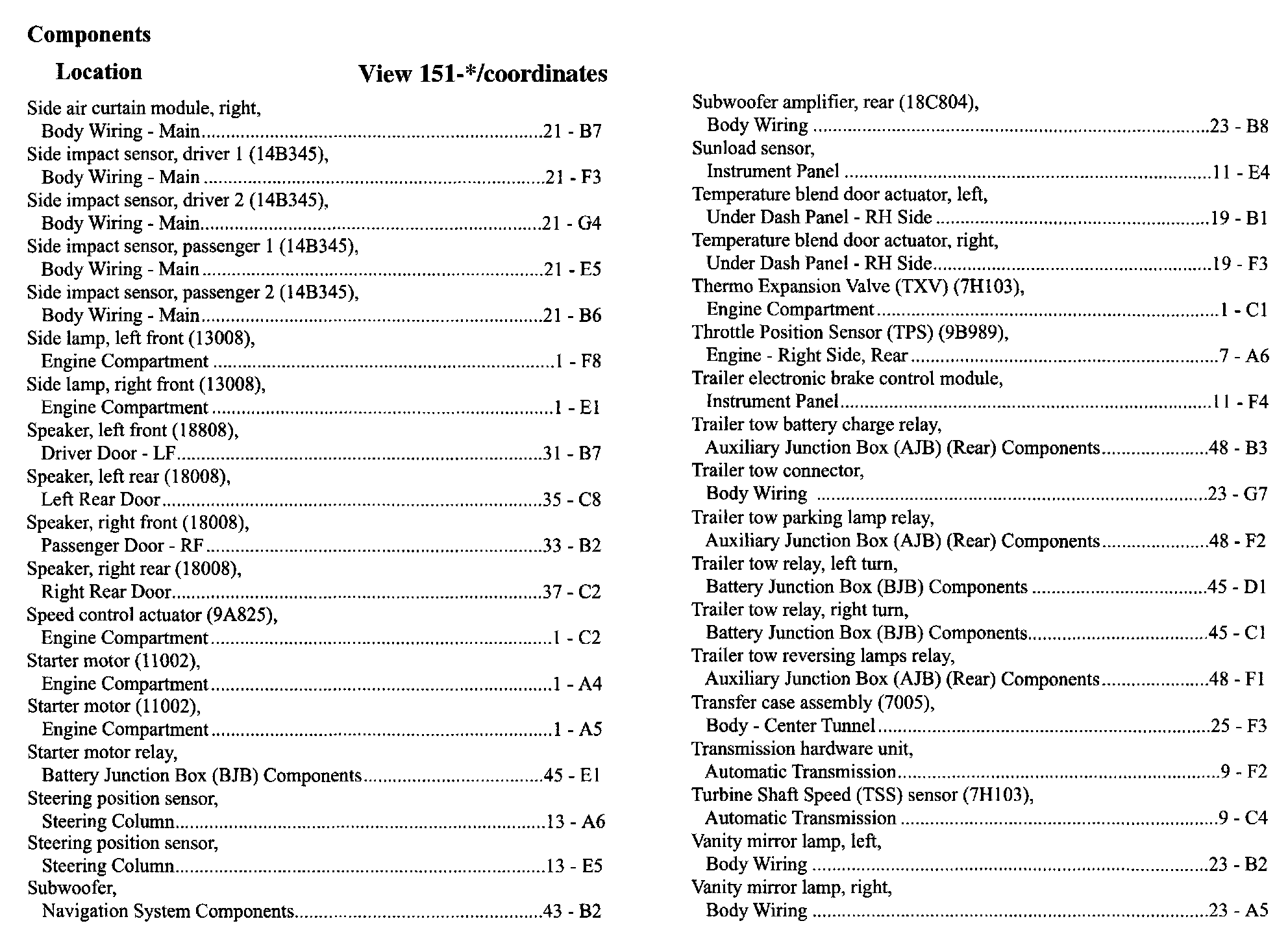 Component Location Index