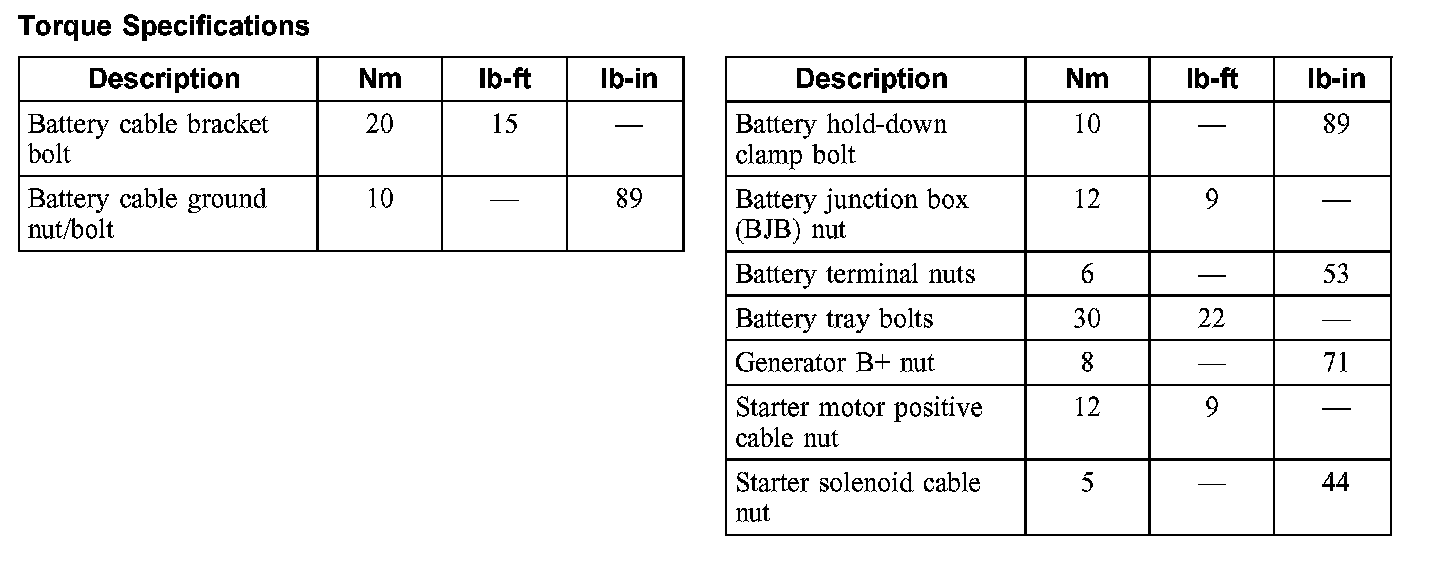 Torque Specifications: