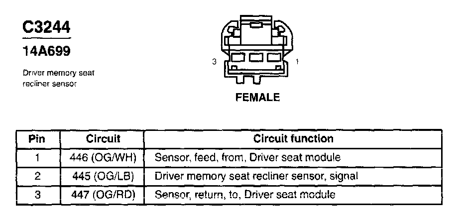 Driver Memory Seat Recliner Sensor