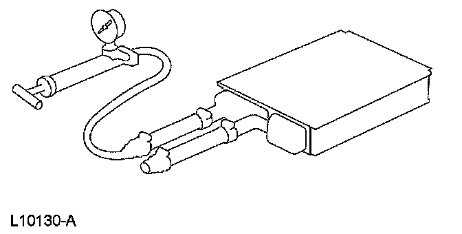 8. If the pressure drops, check the heater water hose connections to the core tubes for leaks. If the heater water hoses do not leak, remove the heater core from the vehicle and perform the bench test.