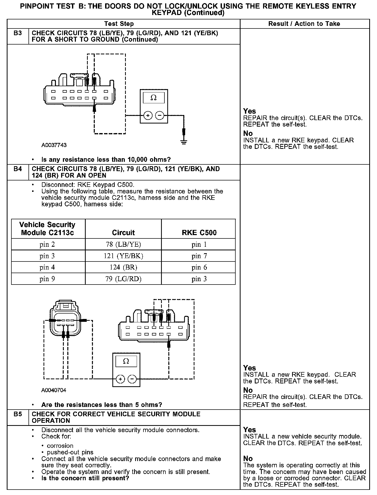 PINPOINT TEST B: THE DOORS DO NOT LOCK/UNLOCK USING THE REMOTE KEYLESS ENTRY KEYPADB1-B3: