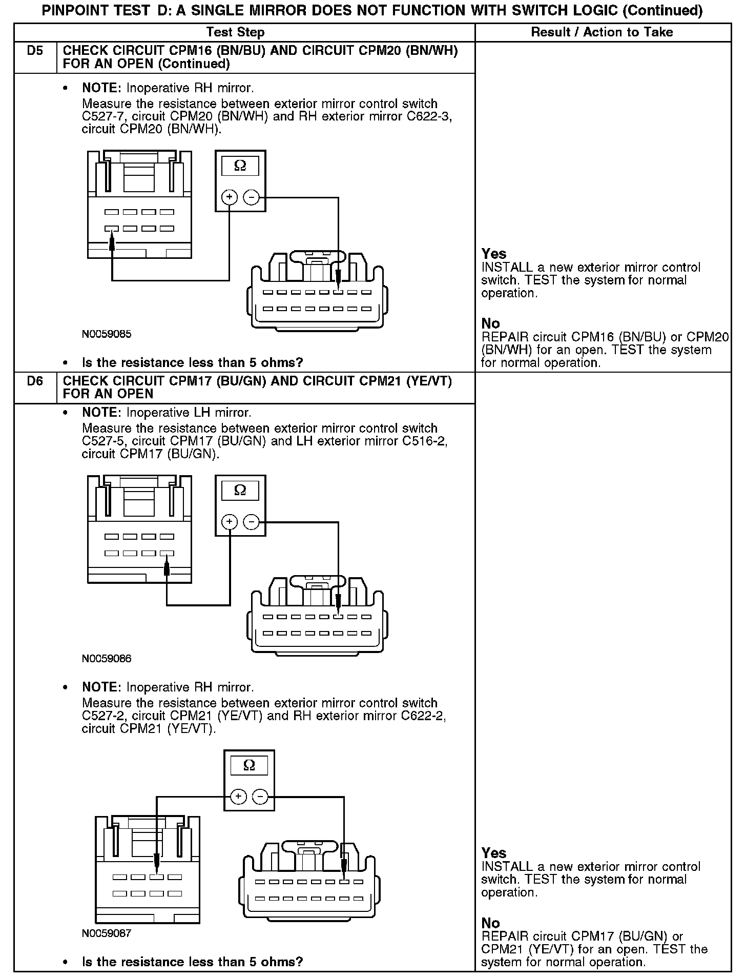 - When power is received through circuit CPM16 (BN/BU) or CPM20 (BN/WH) and ground through circuit CPM23 (GY), the LH or RH exterior mirror glass will move left.