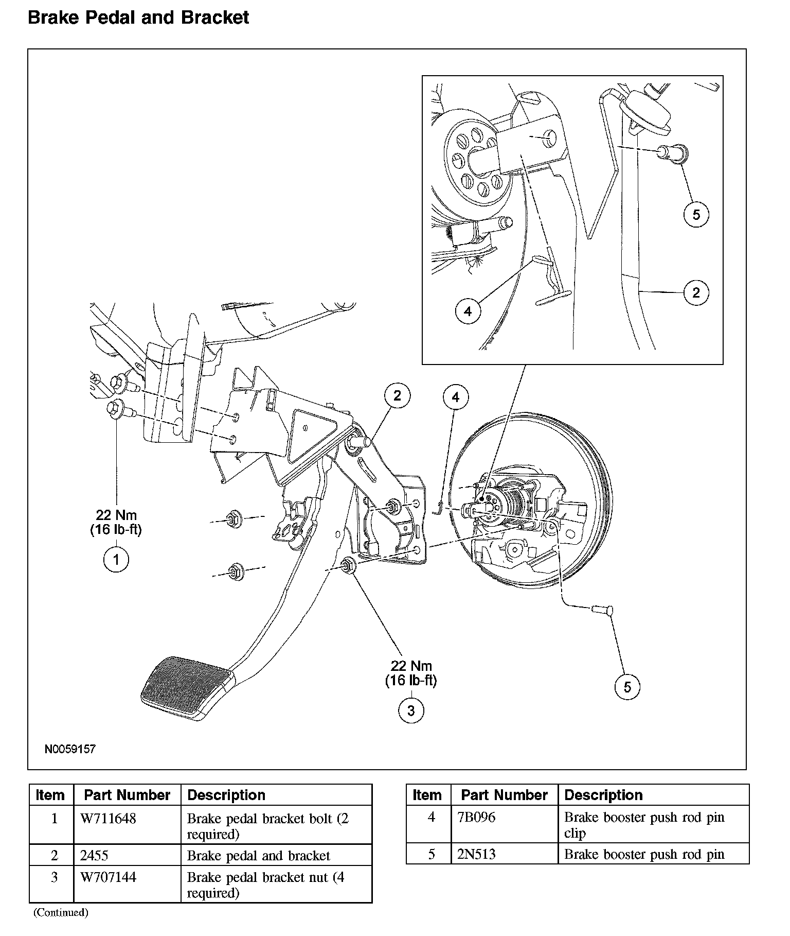 CAUTION: Do not remove or loosen the fasteners that hold the 2 brake pedal bracket halves together. Failure to follow these instructions may result in damage to the brake pedal bracket.