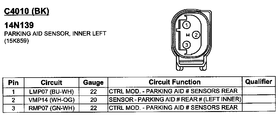 Parking Aid Sensor, Inner Left