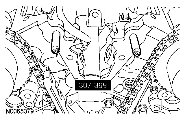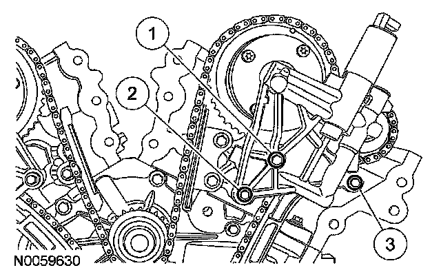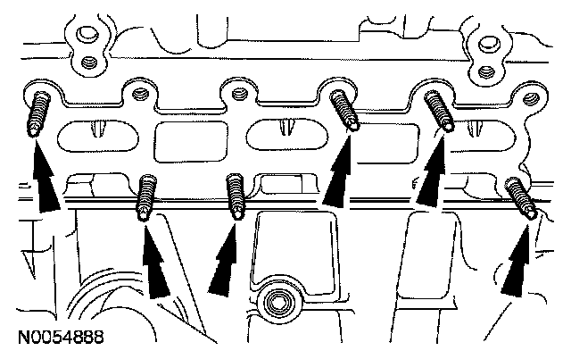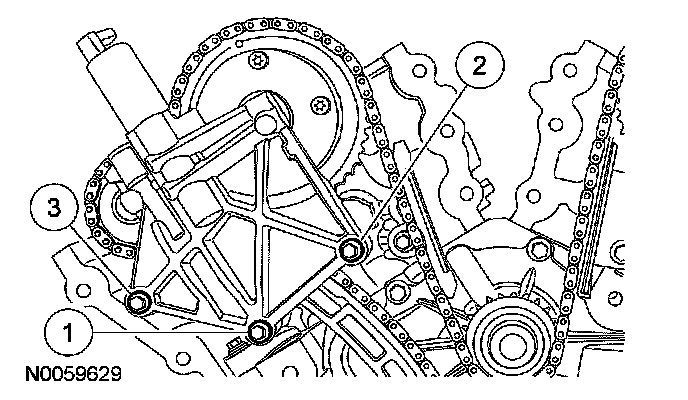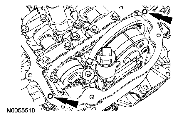 48. CAUTION: Make sure the dowels on the VCT housing are fully engaged in the cylinder head prior to tightening the bolts.