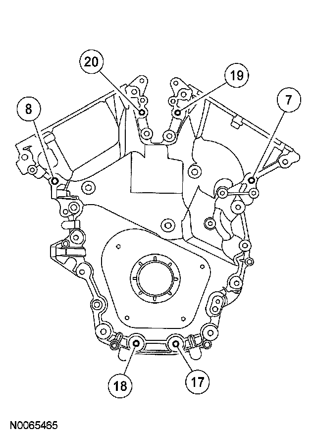52. Install the engine front cover and bolts 7, 8, 17, 18, 19 and 20.