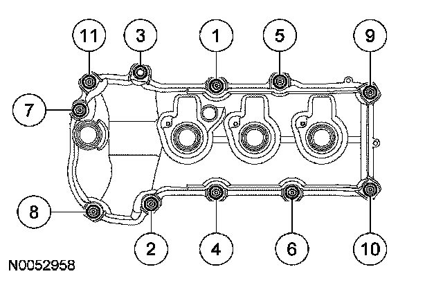 ^ Tighten in the sequence shown to 15 Nm (11 ft. lbs).