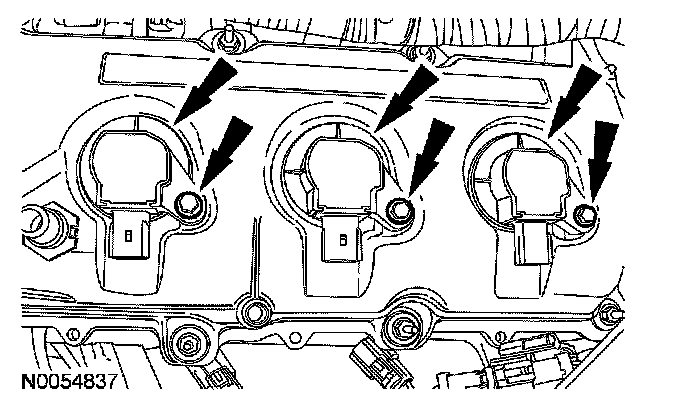 Install the 6 coil-on-plug assemblies and the 6 bolts.