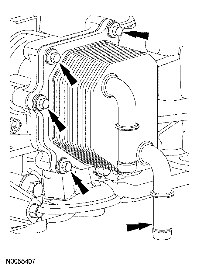 If equipped, install a new oil cooler, new gaskets and the 6 bolts.