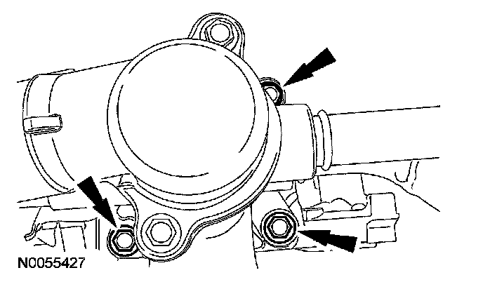 74. Using a new gasket, install the thermostat housing and the 3 bolts.