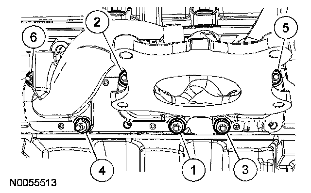Install bolts 1, 2, 3, 4, 5, 6, 9, 10, 11, 12, 13, 14, 15, 16, 21 and 22 and tighten in the sequence shown in 2 stages: