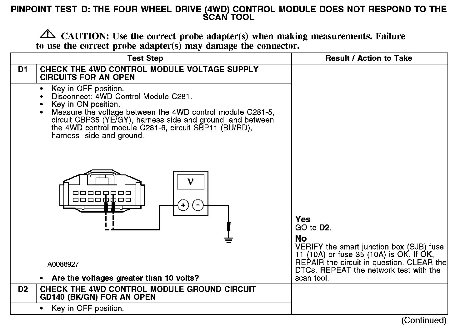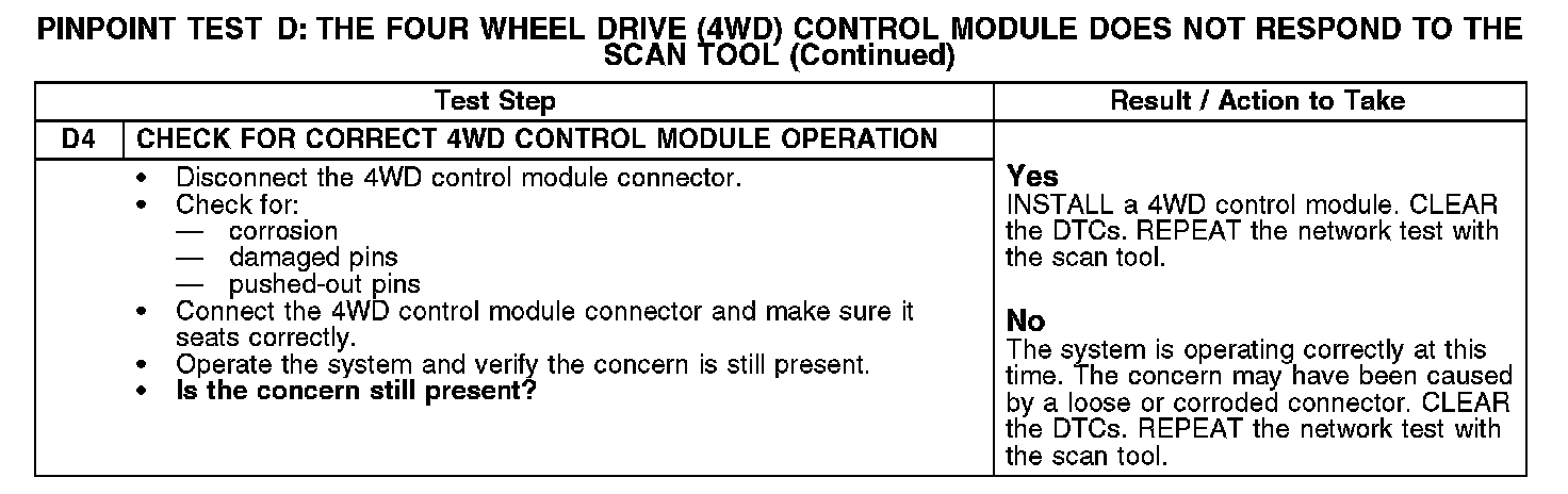 PINPOINT TEST D: THE FOUR WHEEL DRIVE (4WD) CONTROL MODULE DOES NOT RESPOND TO THE SCAN TOOL