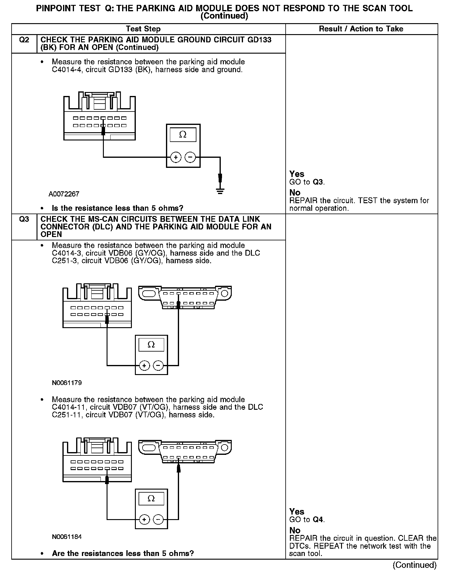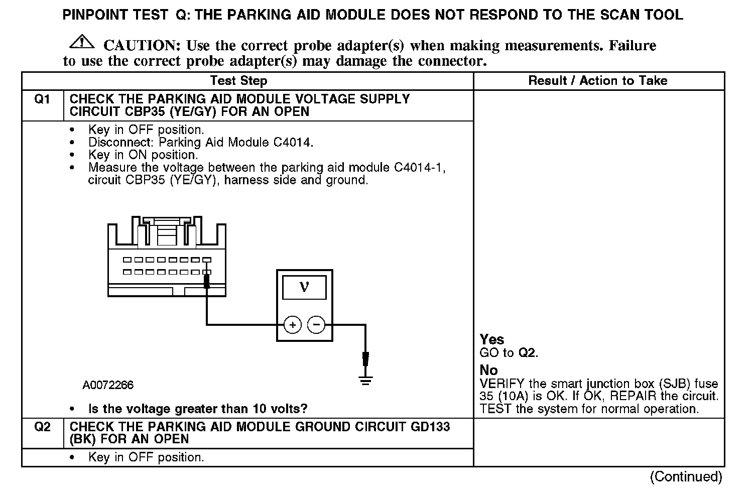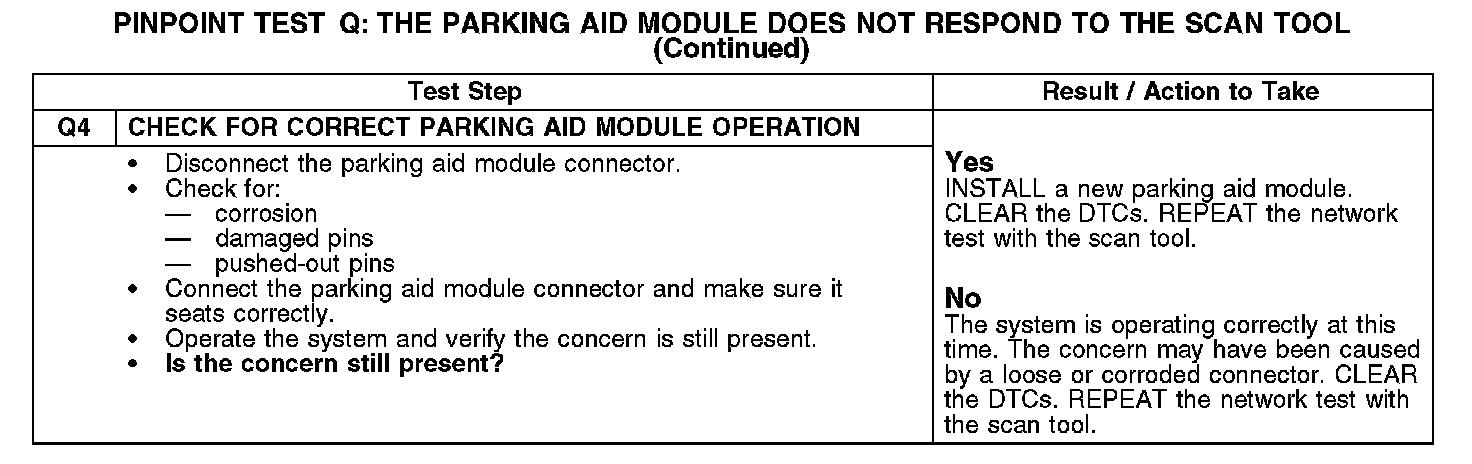 PINPOINT TEST Q: THE PARKING AID MODULE DOES NOT RESPOND TO THE SCAN TOOL