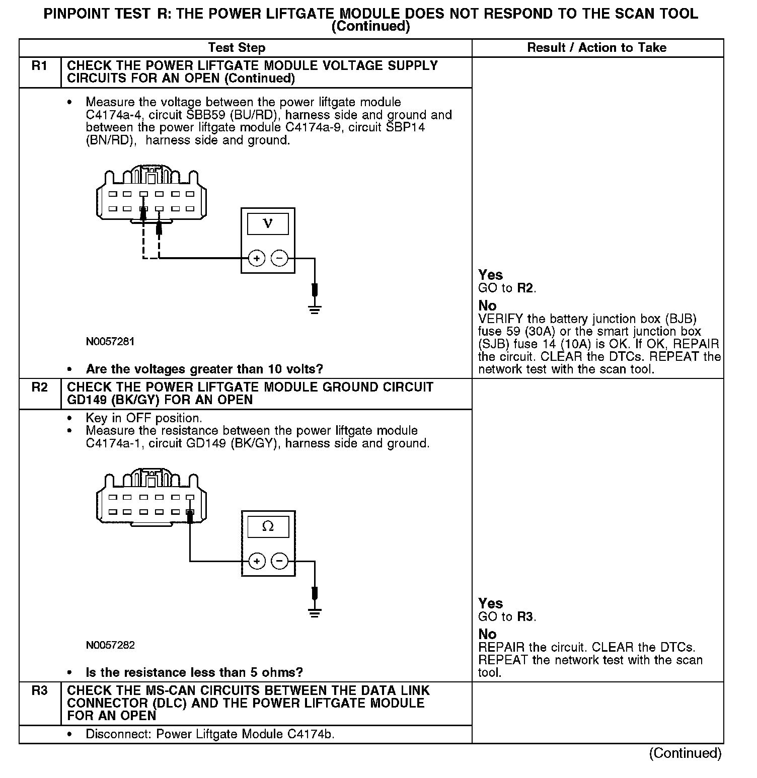 PINPOINT TEST R: THE POWER LIFTGATE MODULE DOES NOT RESPOND TO THE SCAN TOOLR1: