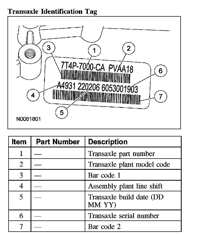 Transaxle Identification Tag:
