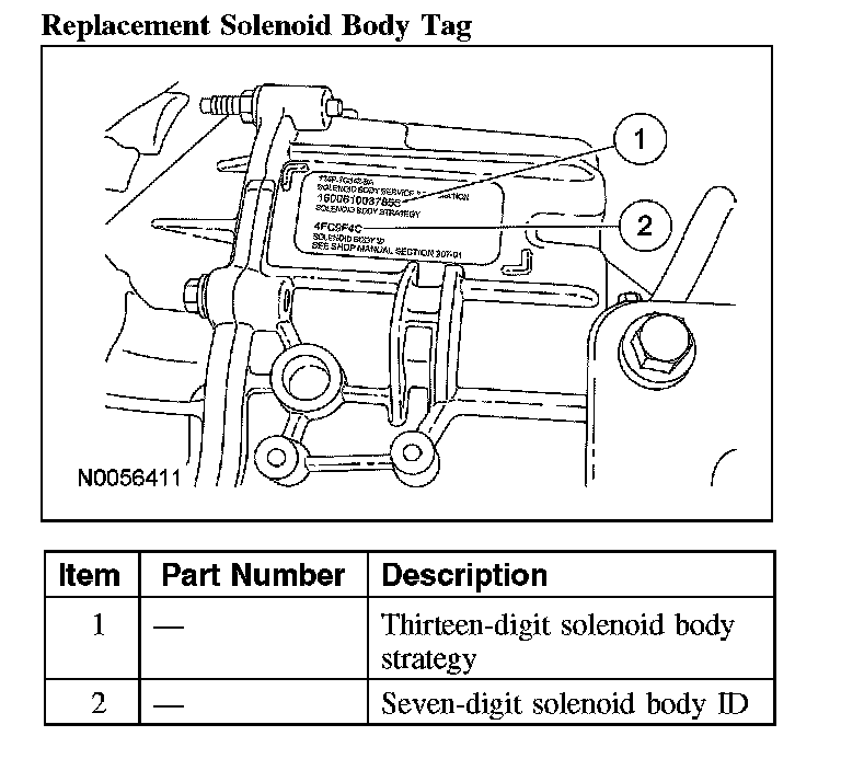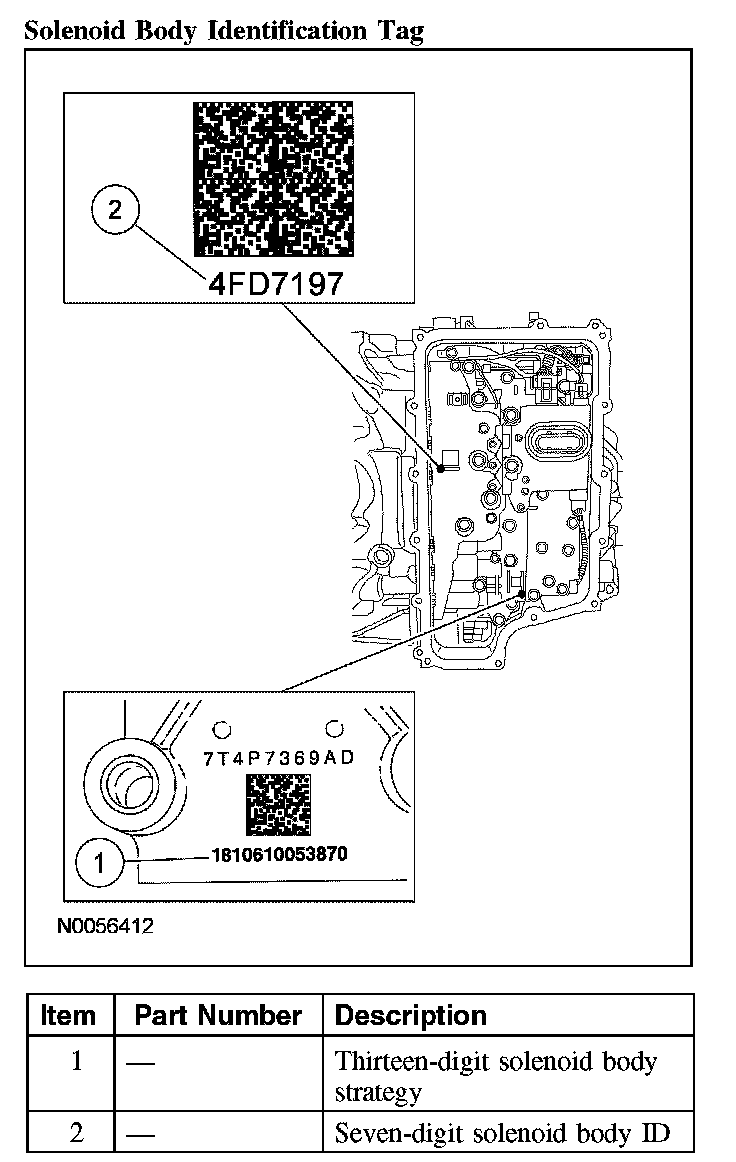 When servicing the solenoid body, use the identification tag located on top of the transaxle case.