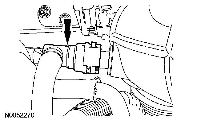 1. Disconnect the mass air flow (MAF) sensor electrical connector and the wiring harness fastener from the air cleaner assembly.