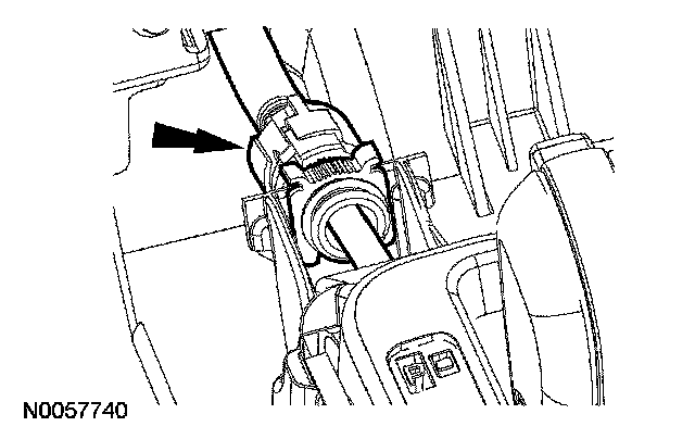 14. With the adjuster locking tab released, connect the selector lever cable end to the manual lever.