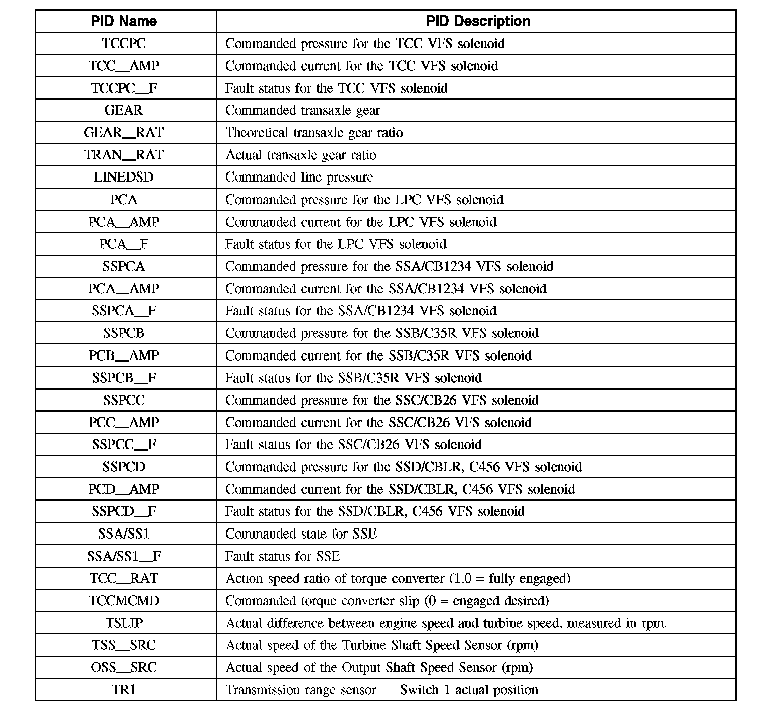 Diagnostic Parameters Identification (PID) Chart
