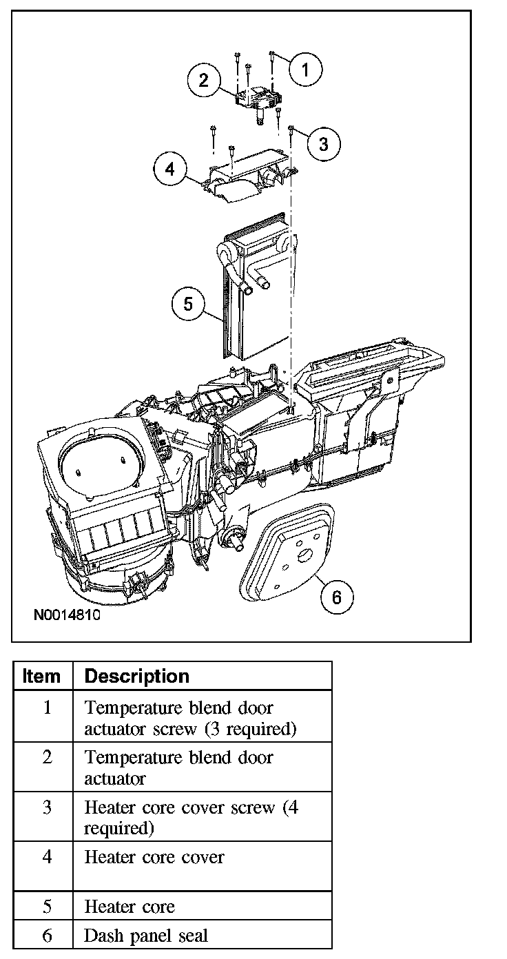 6. NOTE: The heater core seal must be correctly installed to prevent airflow from bypassing the heater core.