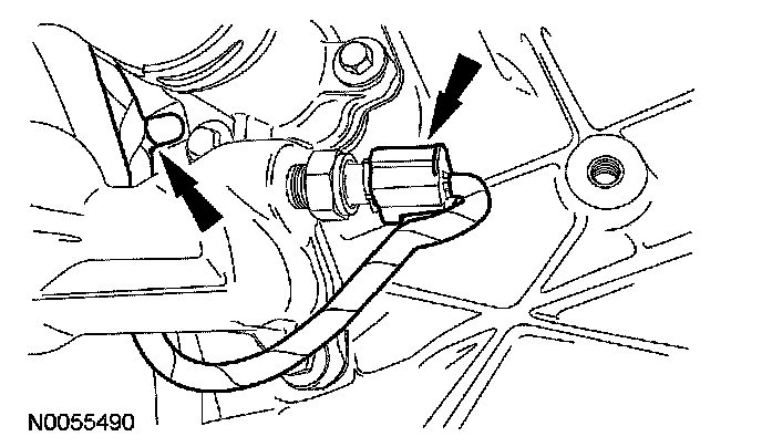 21. Connect the wiring harness position retainer and the crankshaft position (CKP) sensor and A/C compressor electrical connectors.