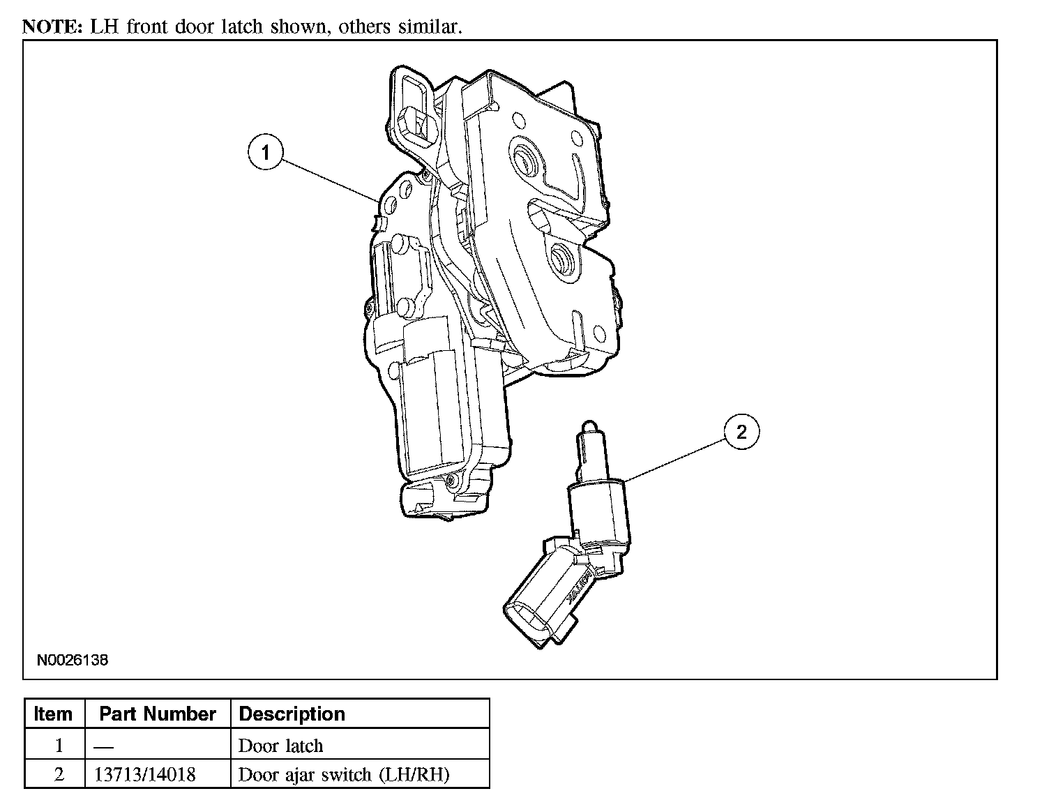 Release the locking tab and remove the door ajar switch.