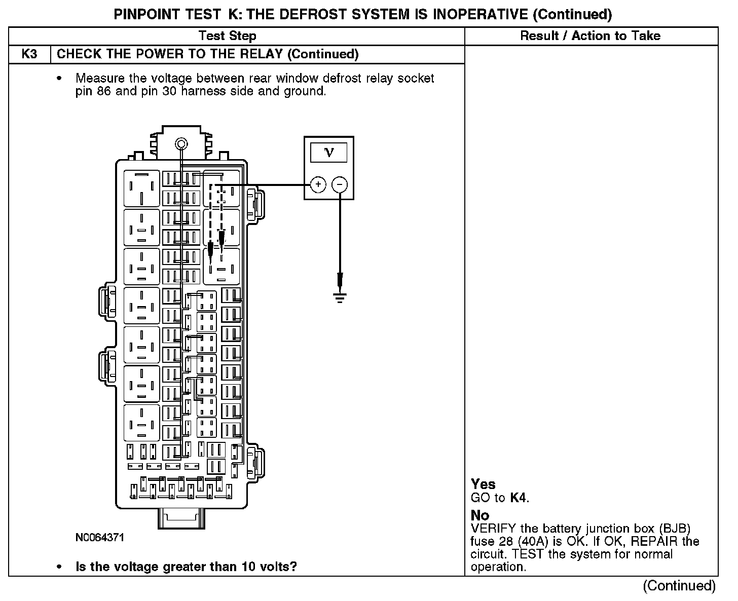 PINPOINT TEST K: THE DEFROST SYSTEM IS INOPERATIVEK1-K3: