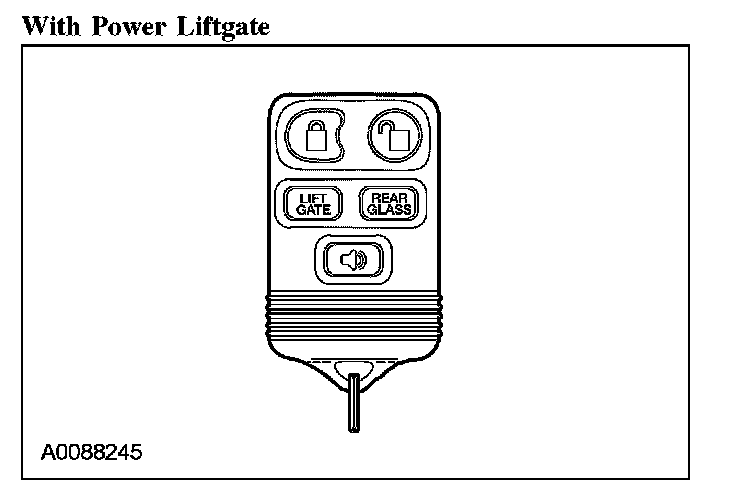 Each vehicle equipped with a keyless entry keypad is programmed with a 5-digit entry code. This code is provided to the customer on a wallet card in the Owner's Literature package. In addition, this code is available through a scan tool. When entering codes, each digit must be entered within 5 seconds of the previous button press.