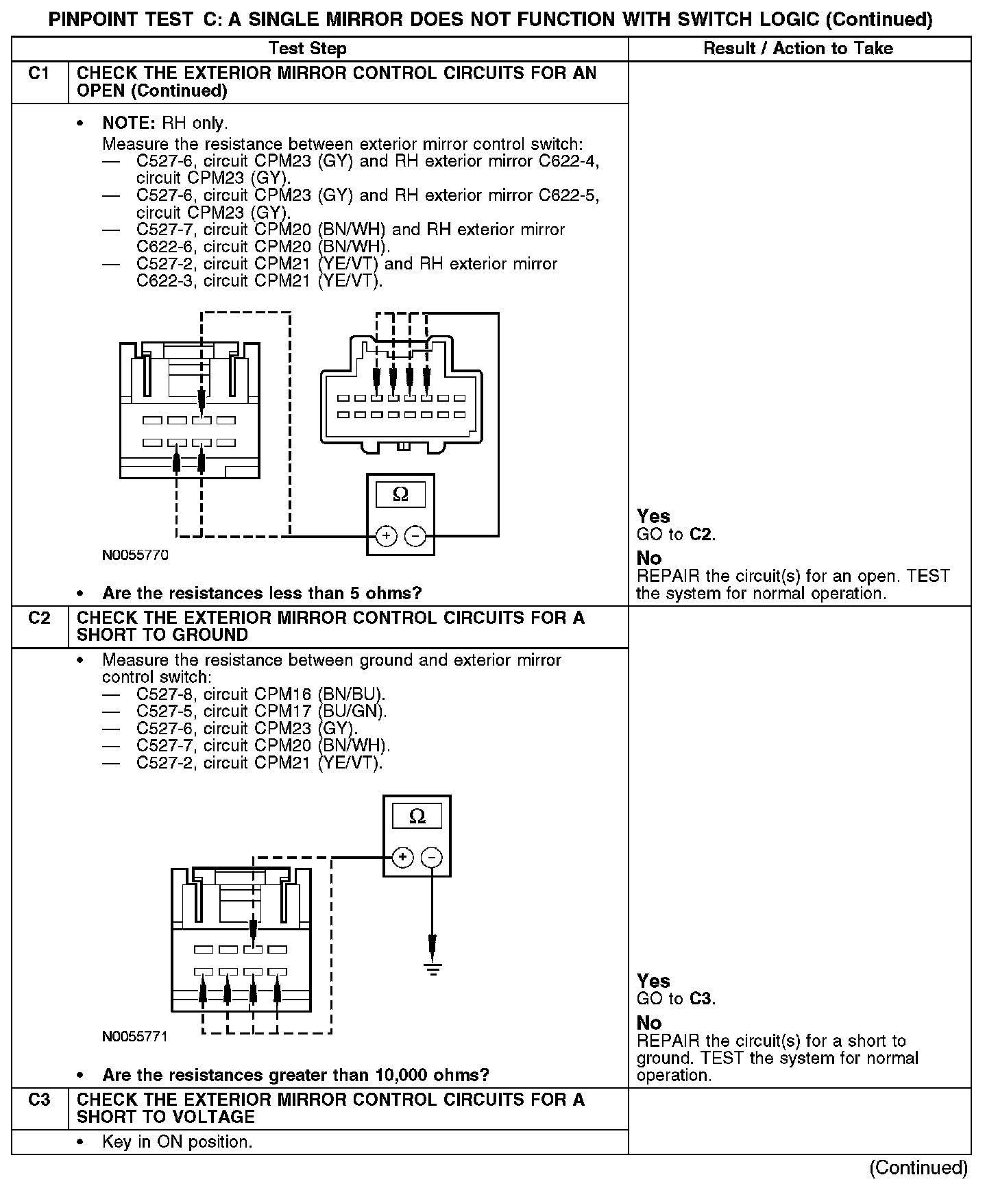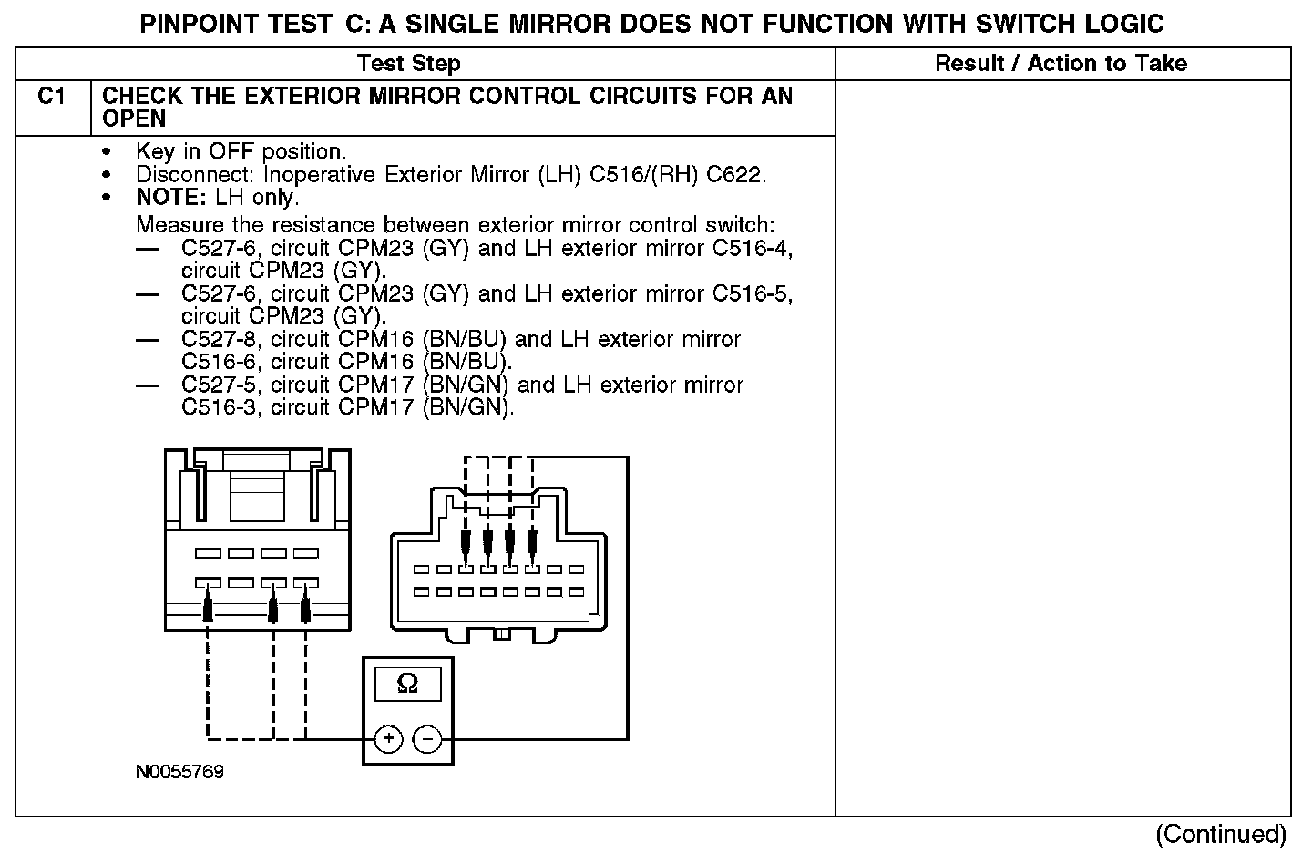 PINPOINT TEST C: A SINGLE MIRROR DOES NOT FUNCTION WITH SWITCH LOGICC1 Continued: