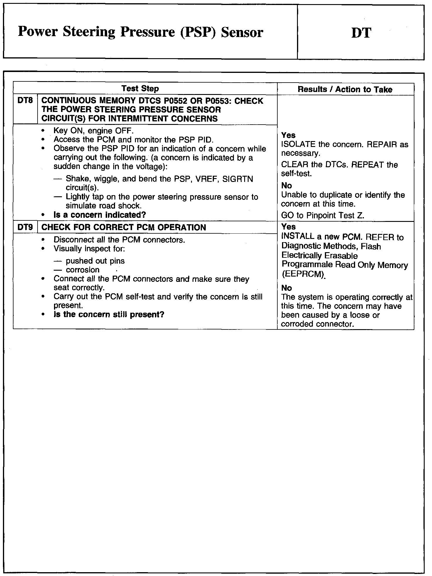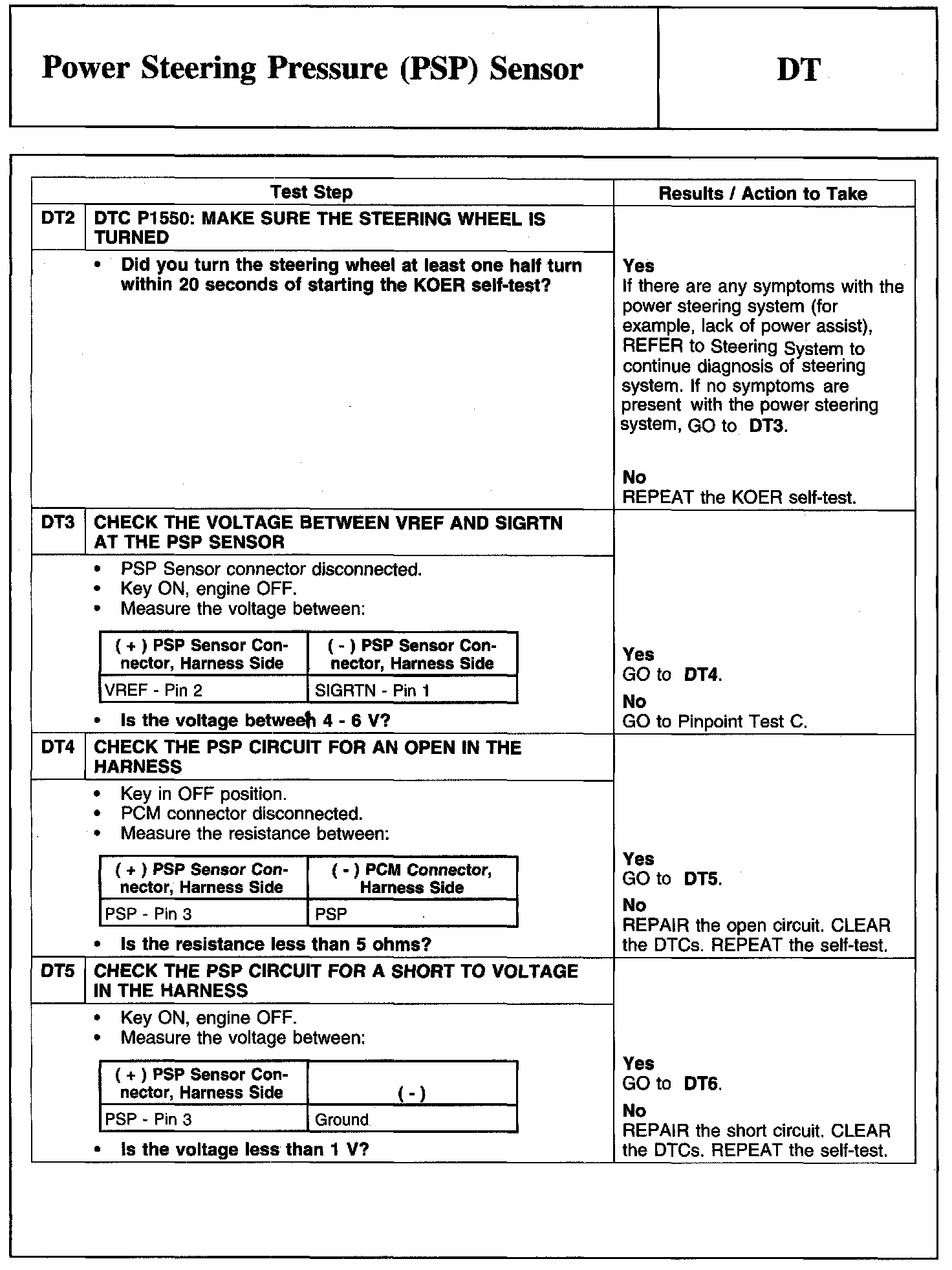 PINPOINT TEST DT: POWER STEERING PRESSURE (PSP) SENSOR