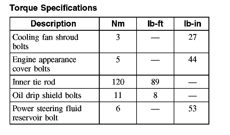 Torque Specifications: