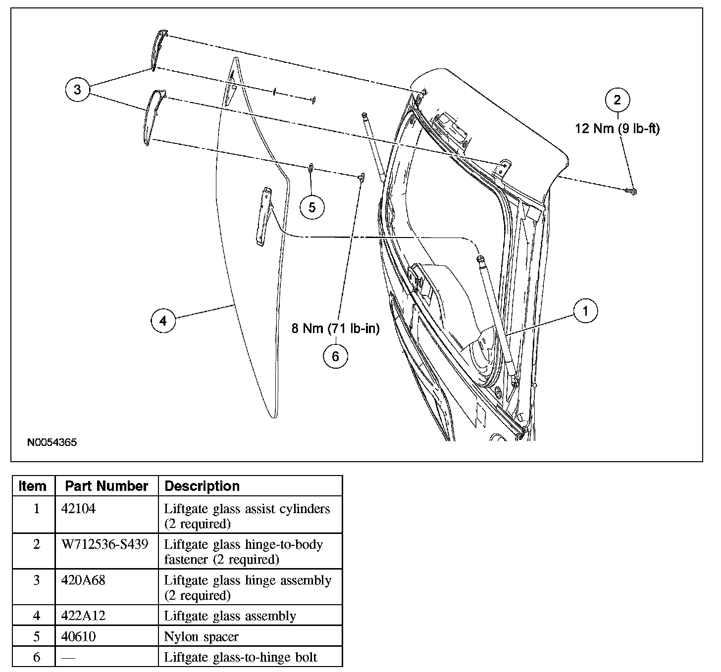 5. Remove the liftgate glass to hinge fasteners and remove the glass.