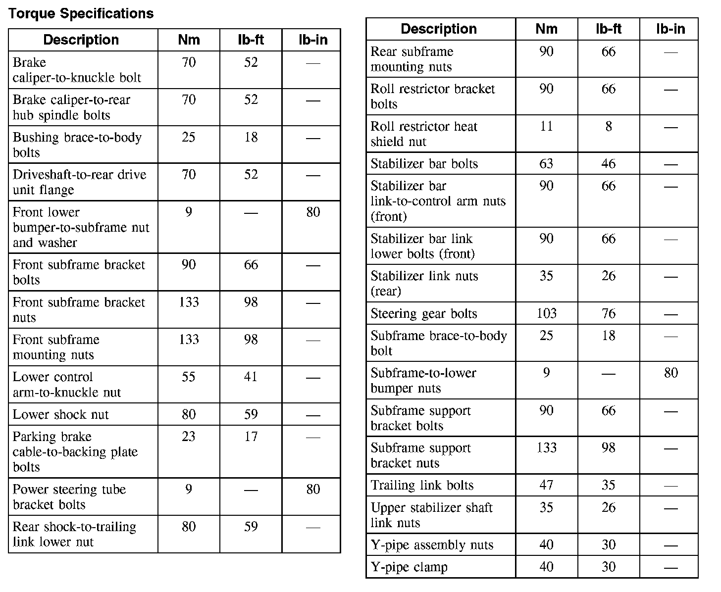 Torque Specifications: