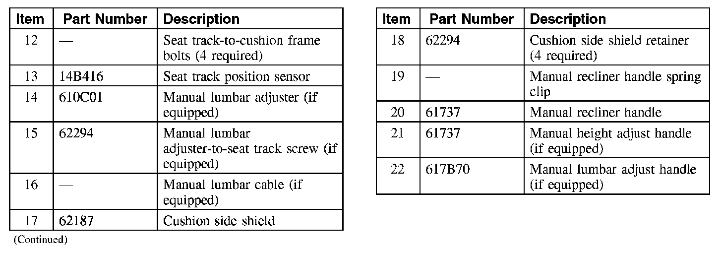 Driver Seat Cushion With Manual Seat Track (Part 2):