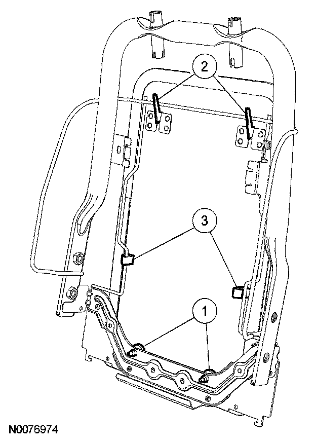 4. NOTE: The seat backrest trim cover and foam pad have been removed to show the backrest trim panel retainers.