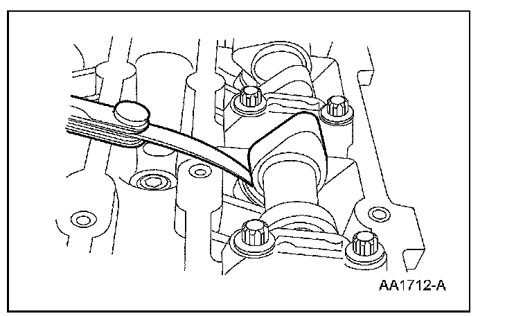 2. NOTE: The valve clearance must be measured with the camshaft at base circle. The engine will have to be rotated with the crankshaft pulley bolt to bring each valve to base circle.