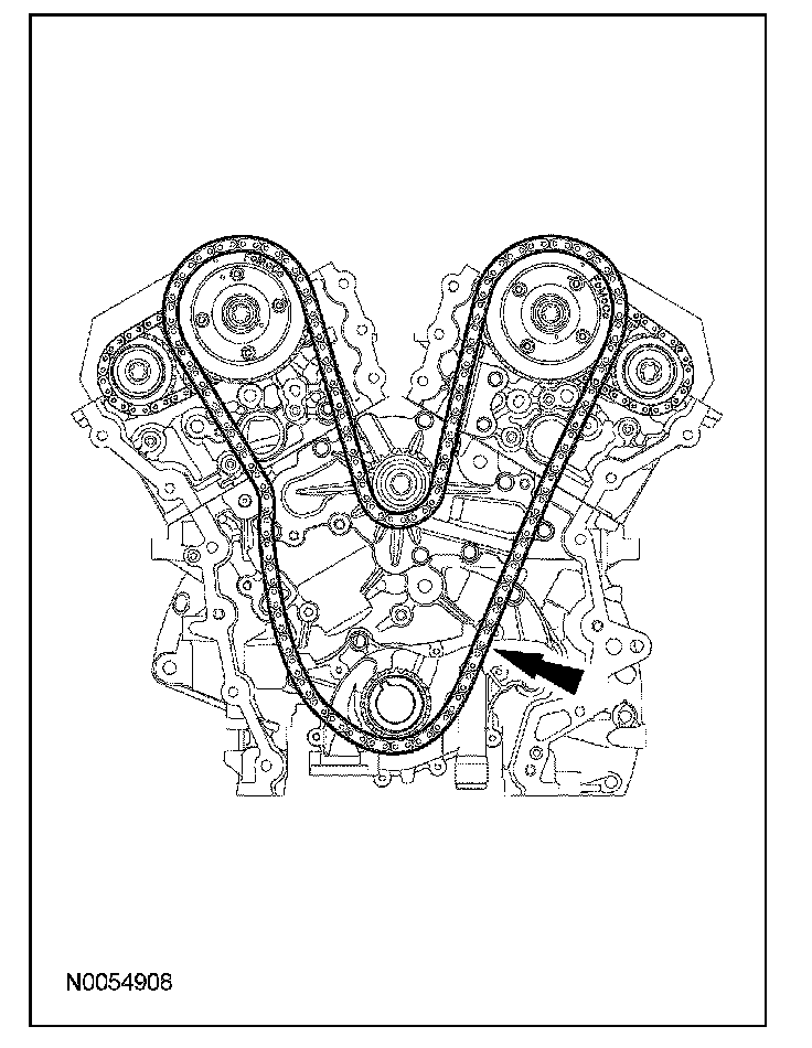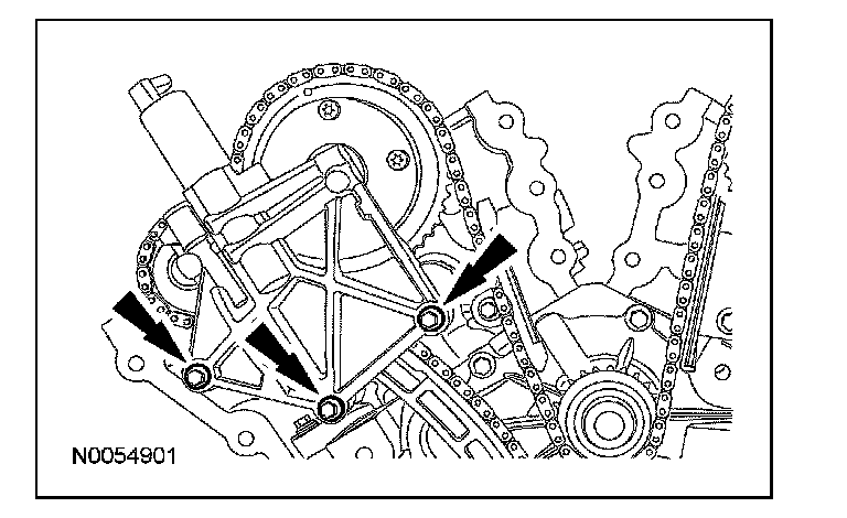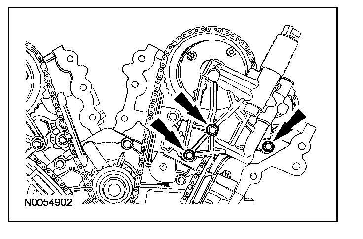 ^ Remove the LH VCT assembly, secondary timing chain and the LH exhaust camshaft sprocket as an assembly.