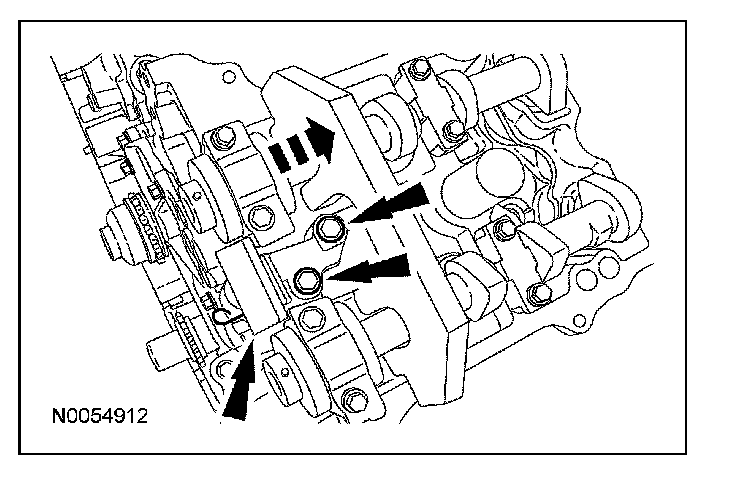 5. Install the new VCT bolt and new exhaust camshaft bolt and the original washers. Tighten in 4 stages.
