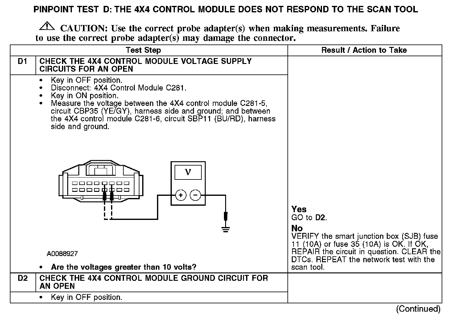 PINPOINT TEST D: THE 4X4 CONTROL MODULE DOES NOT RESPOND TO THE SCAN TOOLNormal Operation