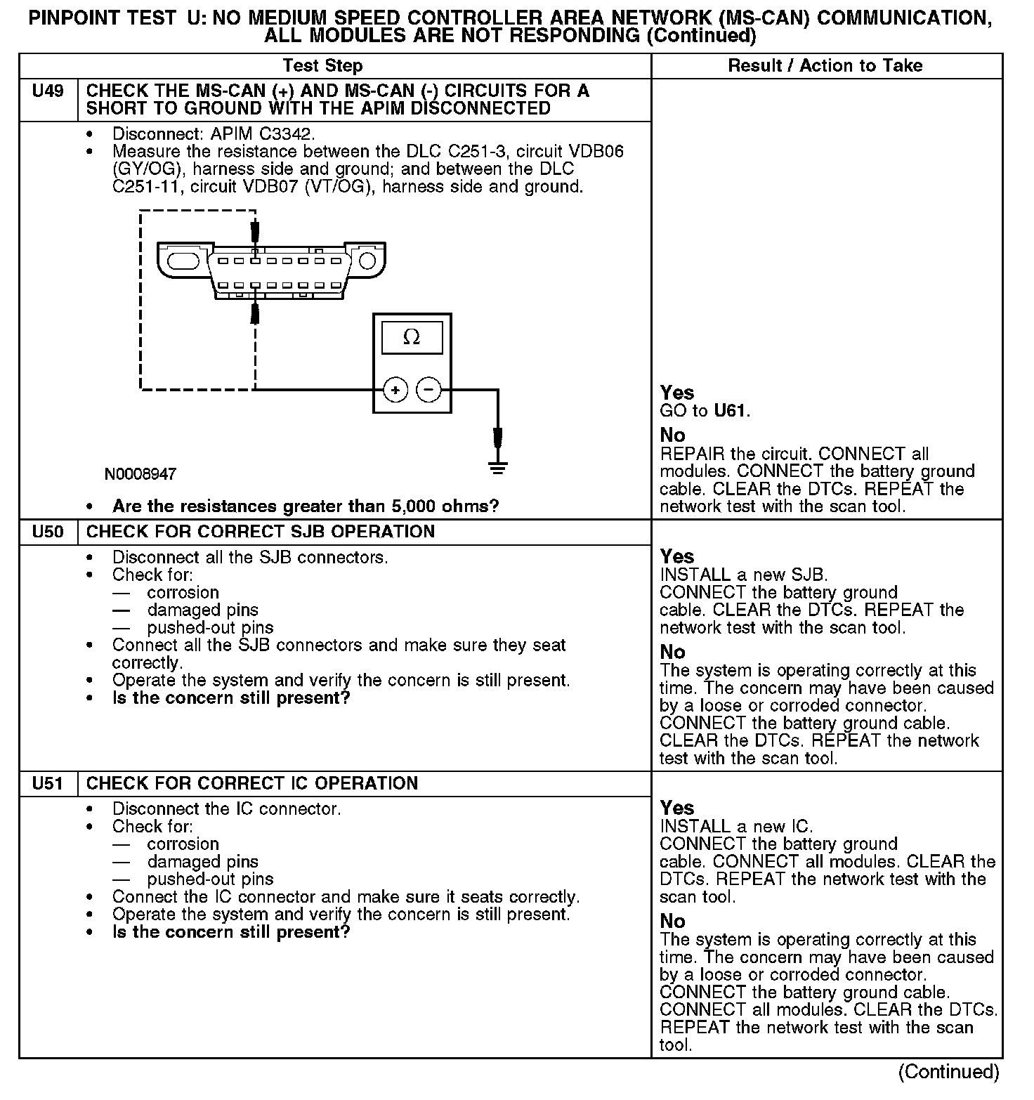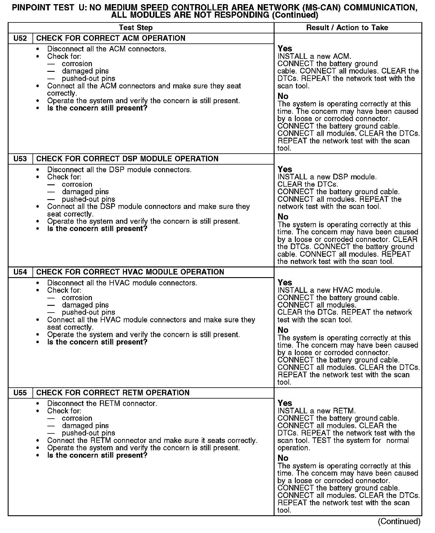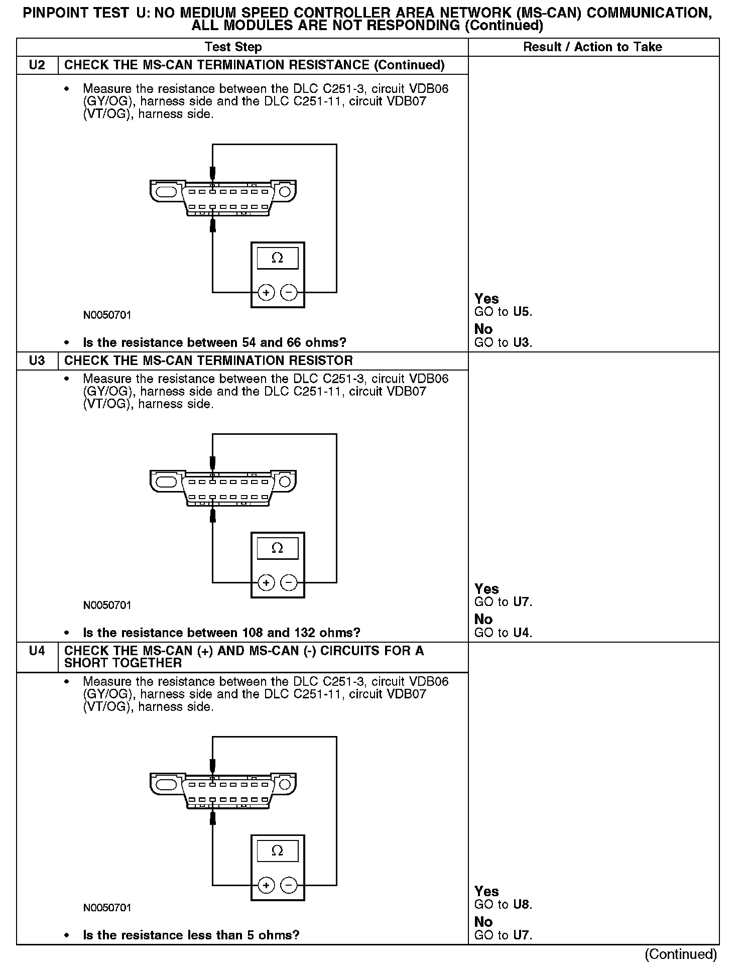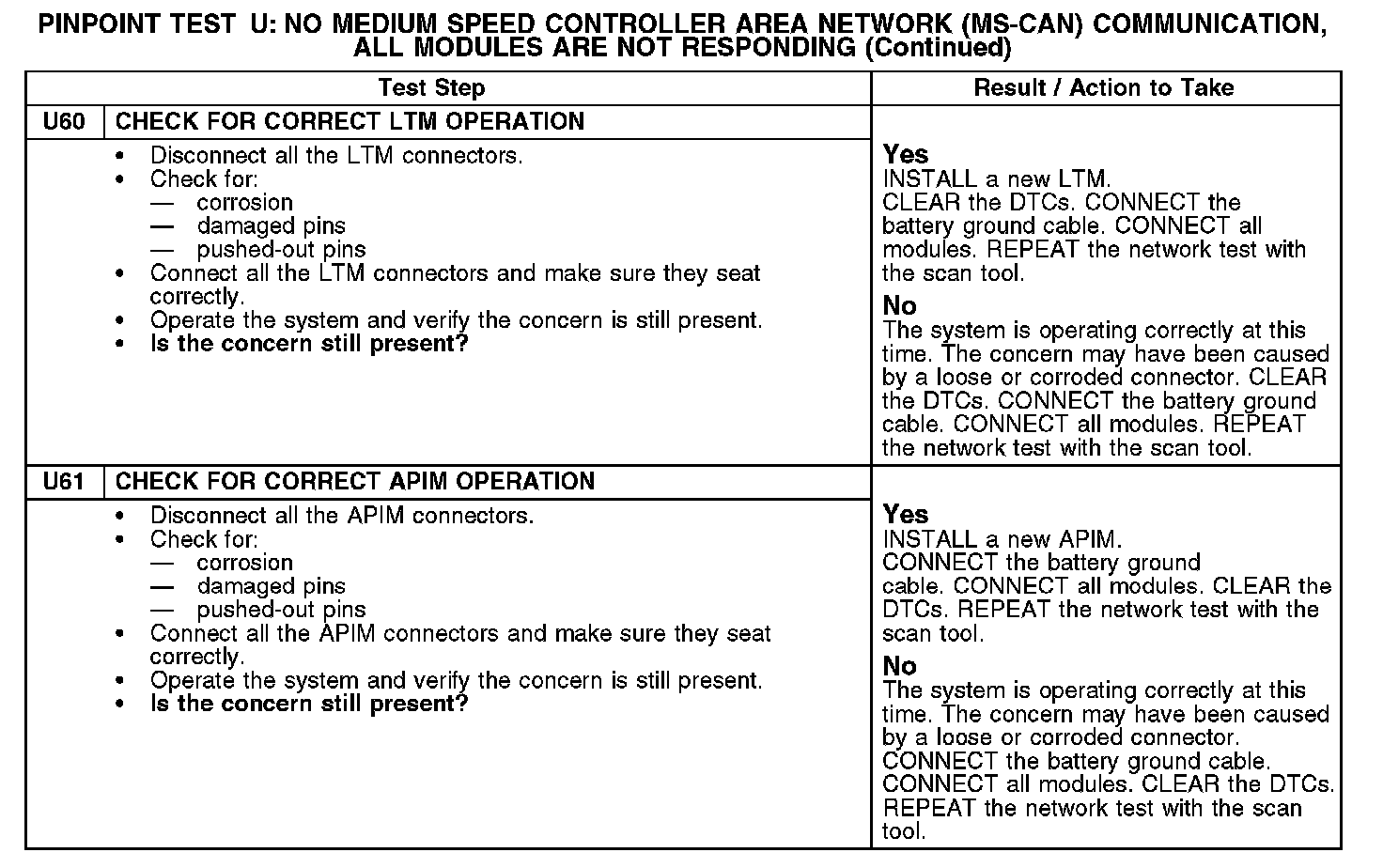 Test U: No Medium Speed Controller Area Network (MS-CAN) Communication, All Modules Are Not Responding