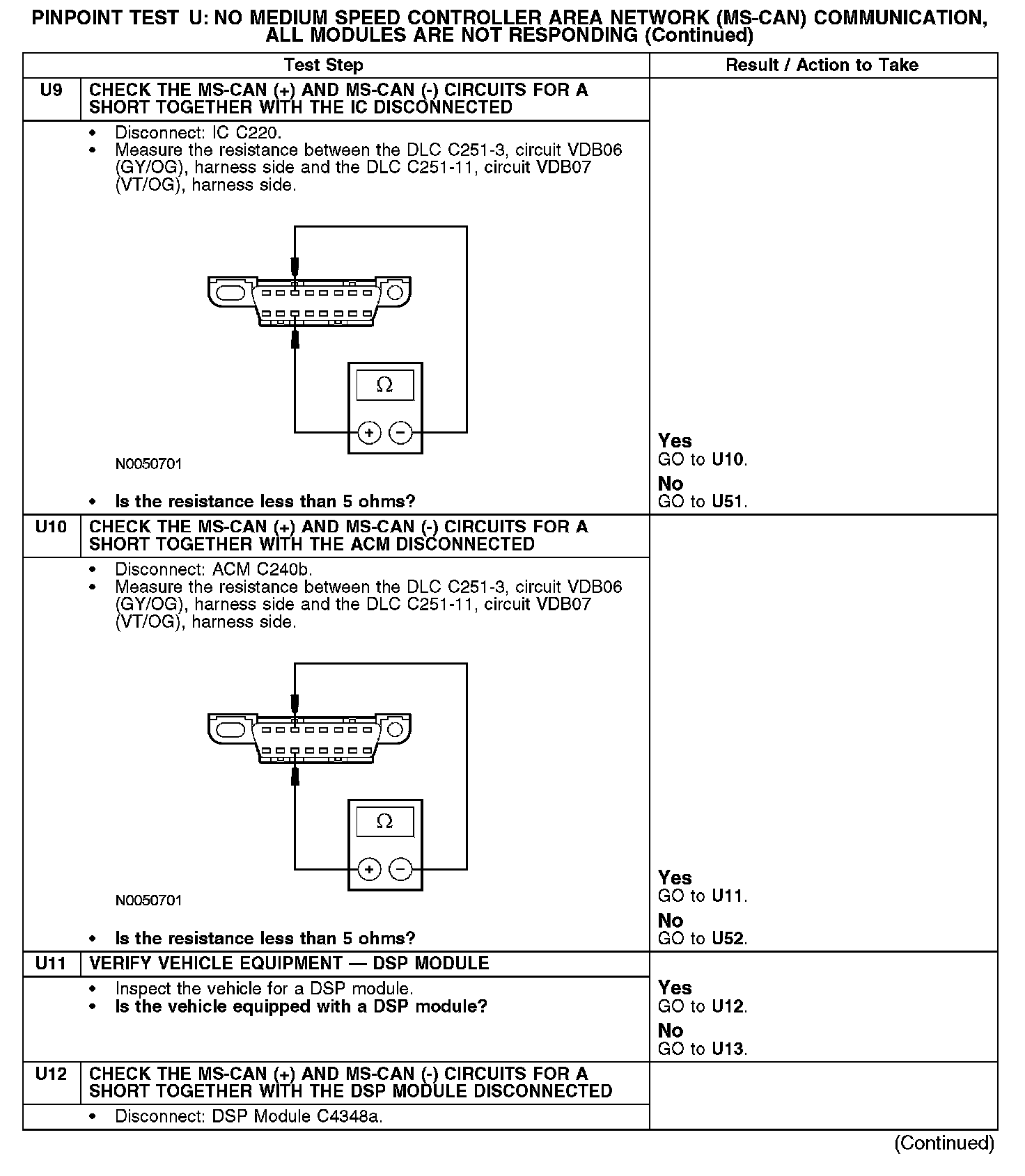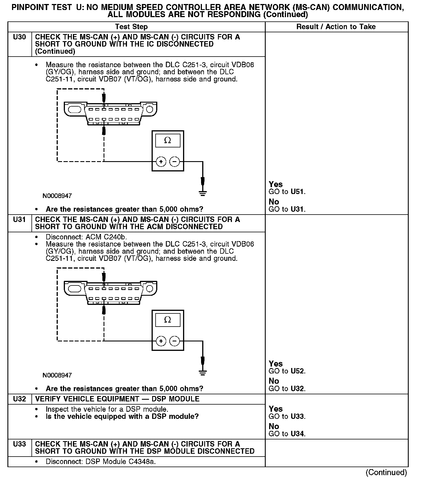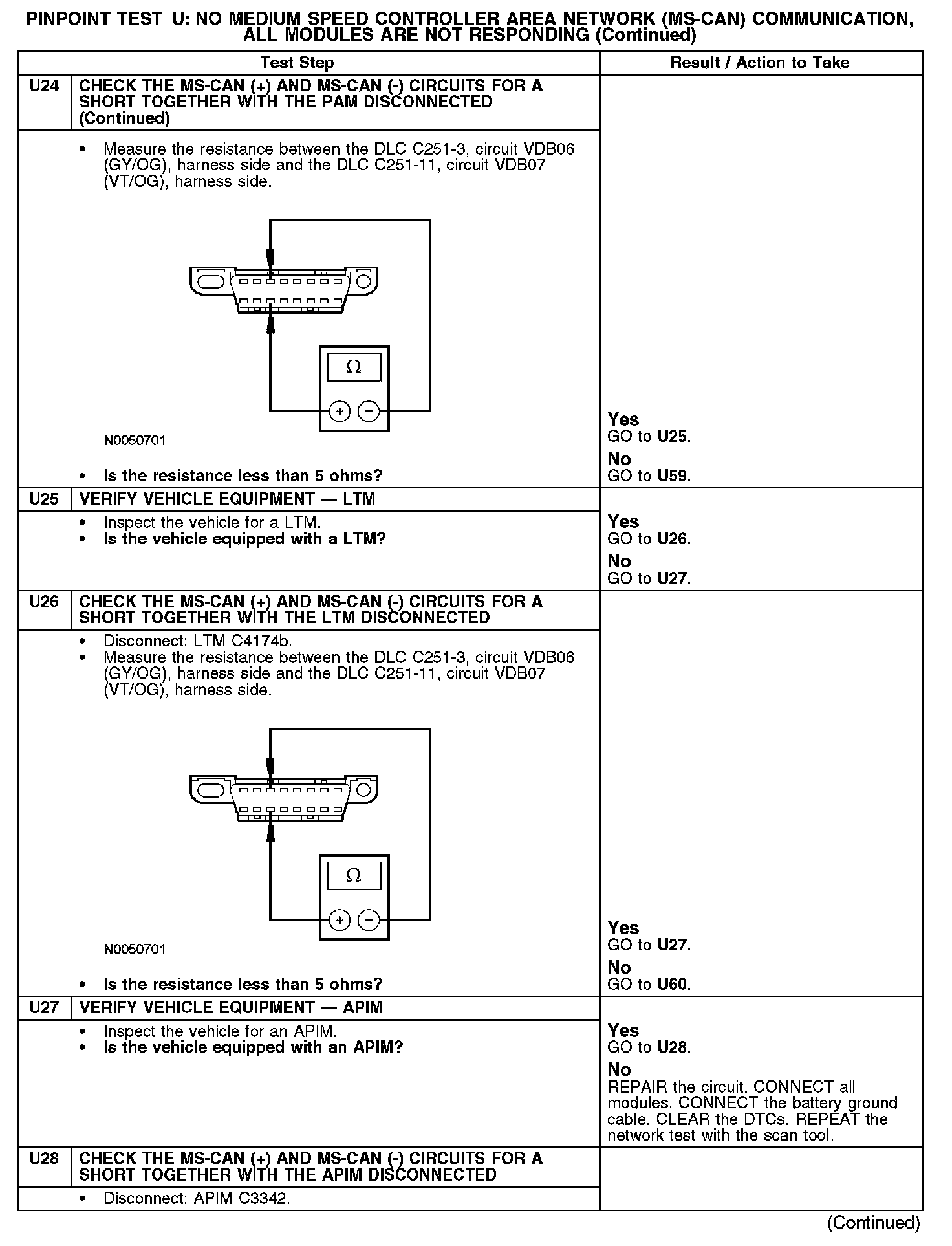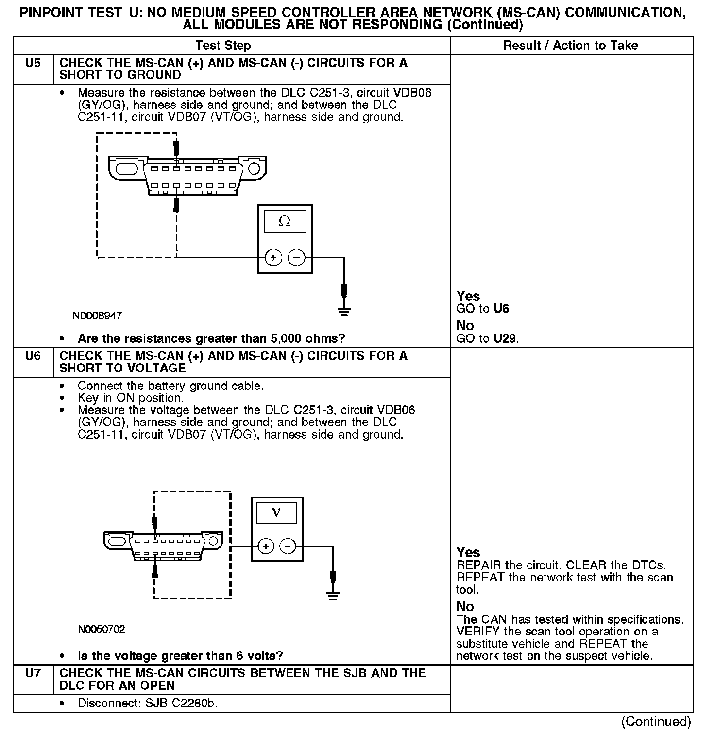 Test U: No Medium Speed Controller Area Network (MS-CAN) Communication, All Modules Are Not Responding