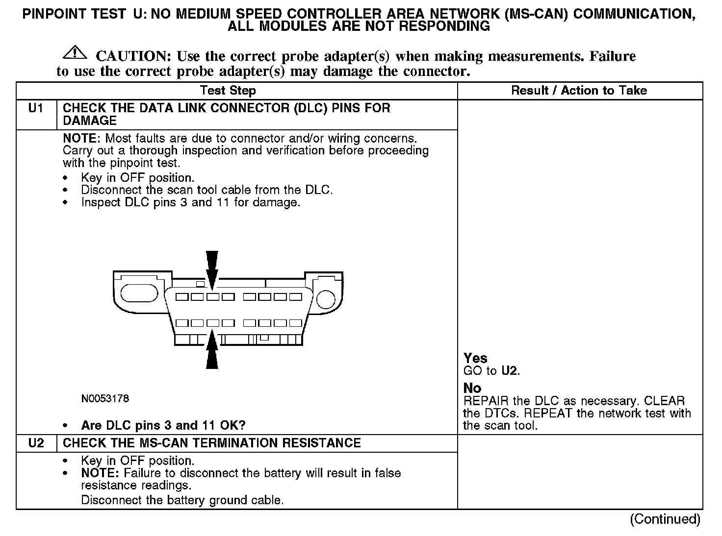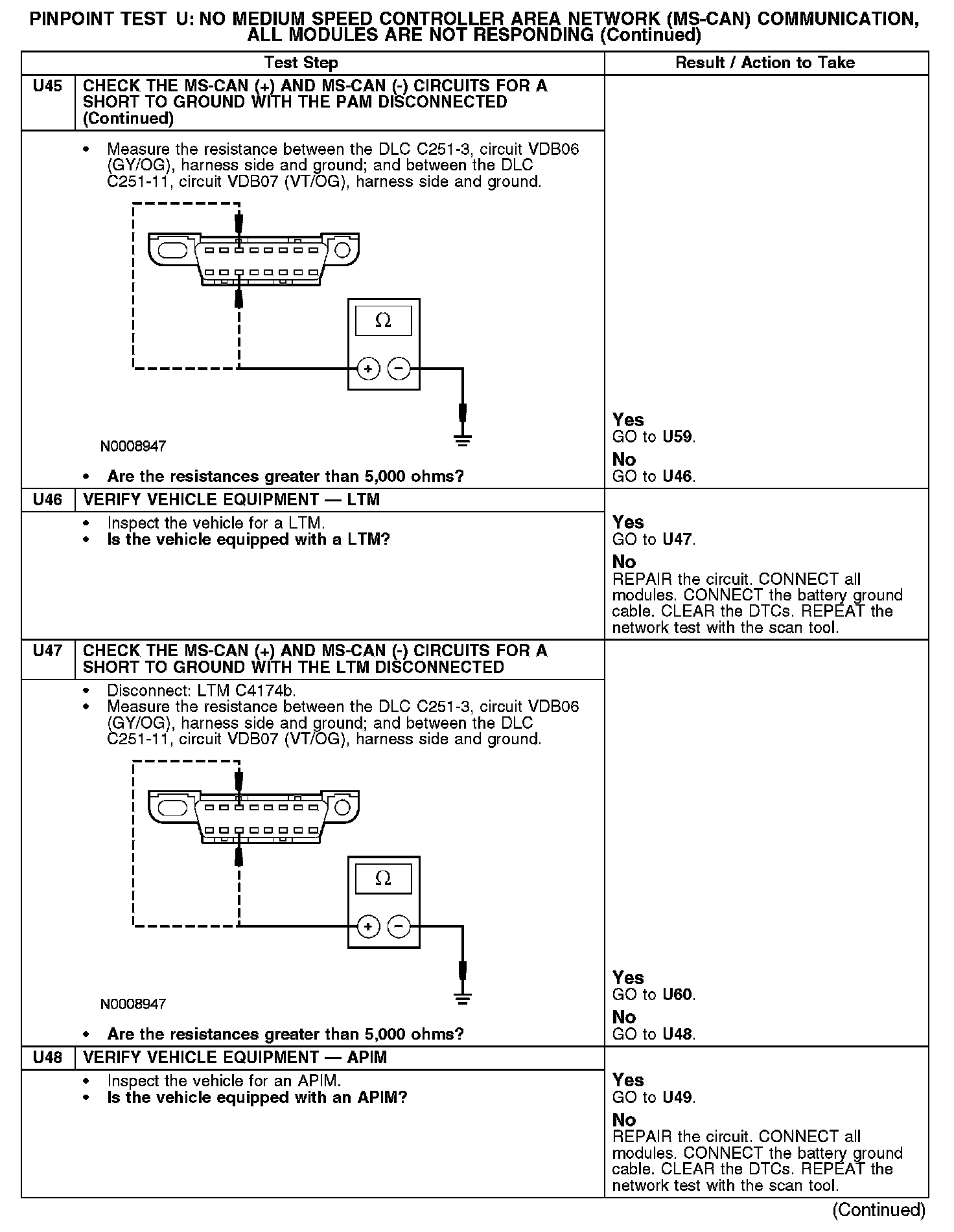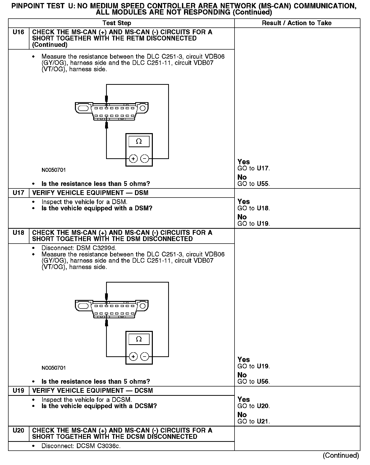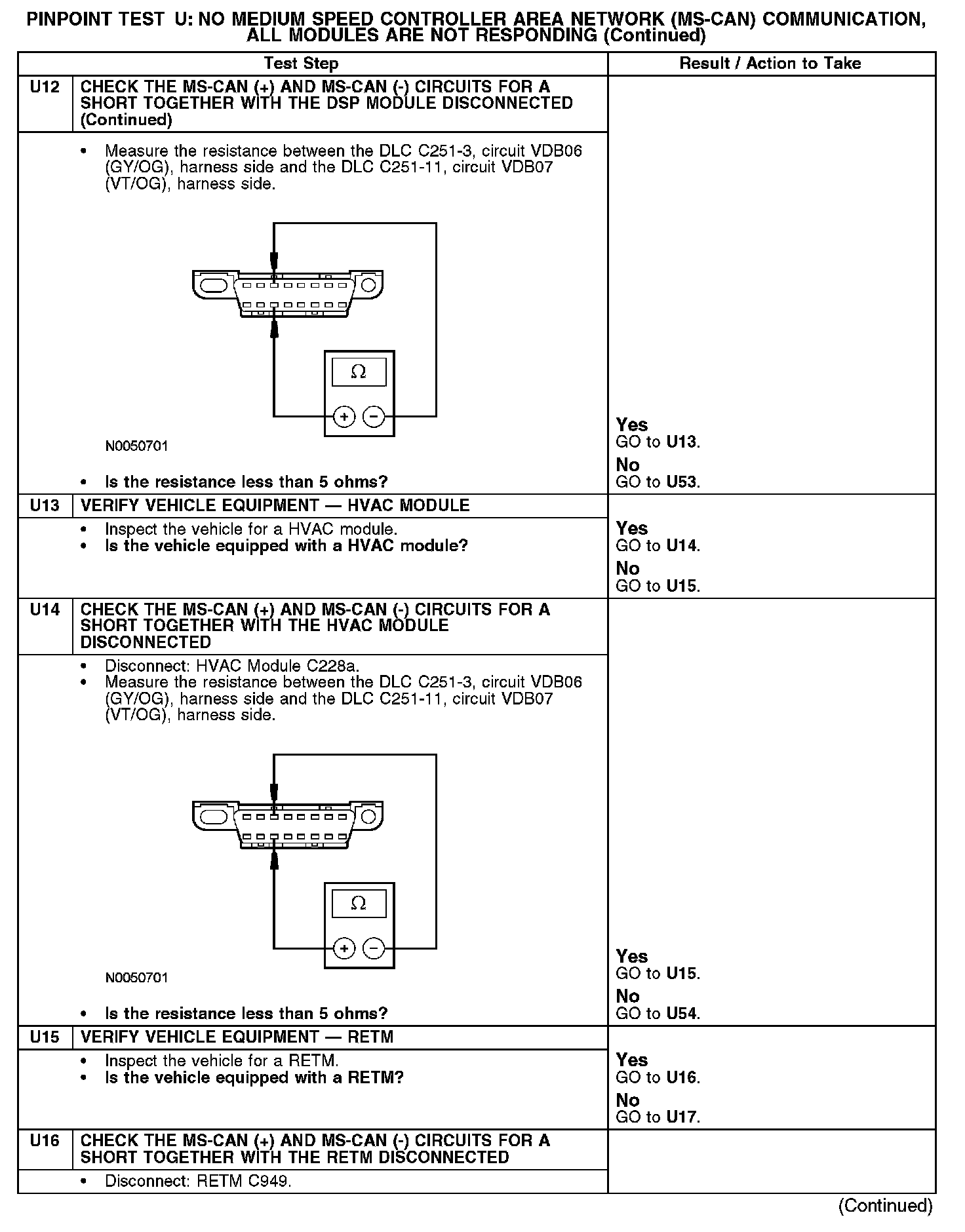 Test U: No Medium Speed Controller Area Network (MS-CAN) Communication, All Modules Are Not Responding