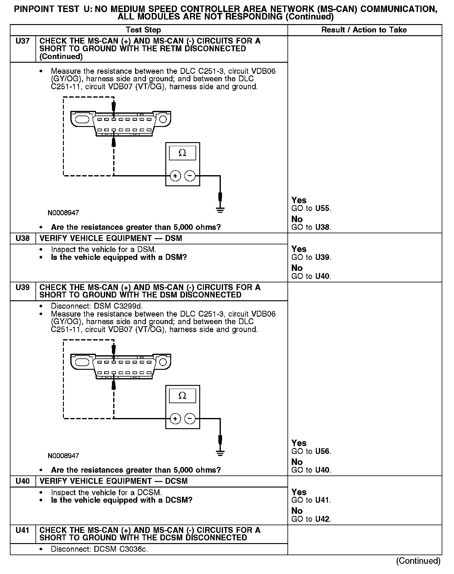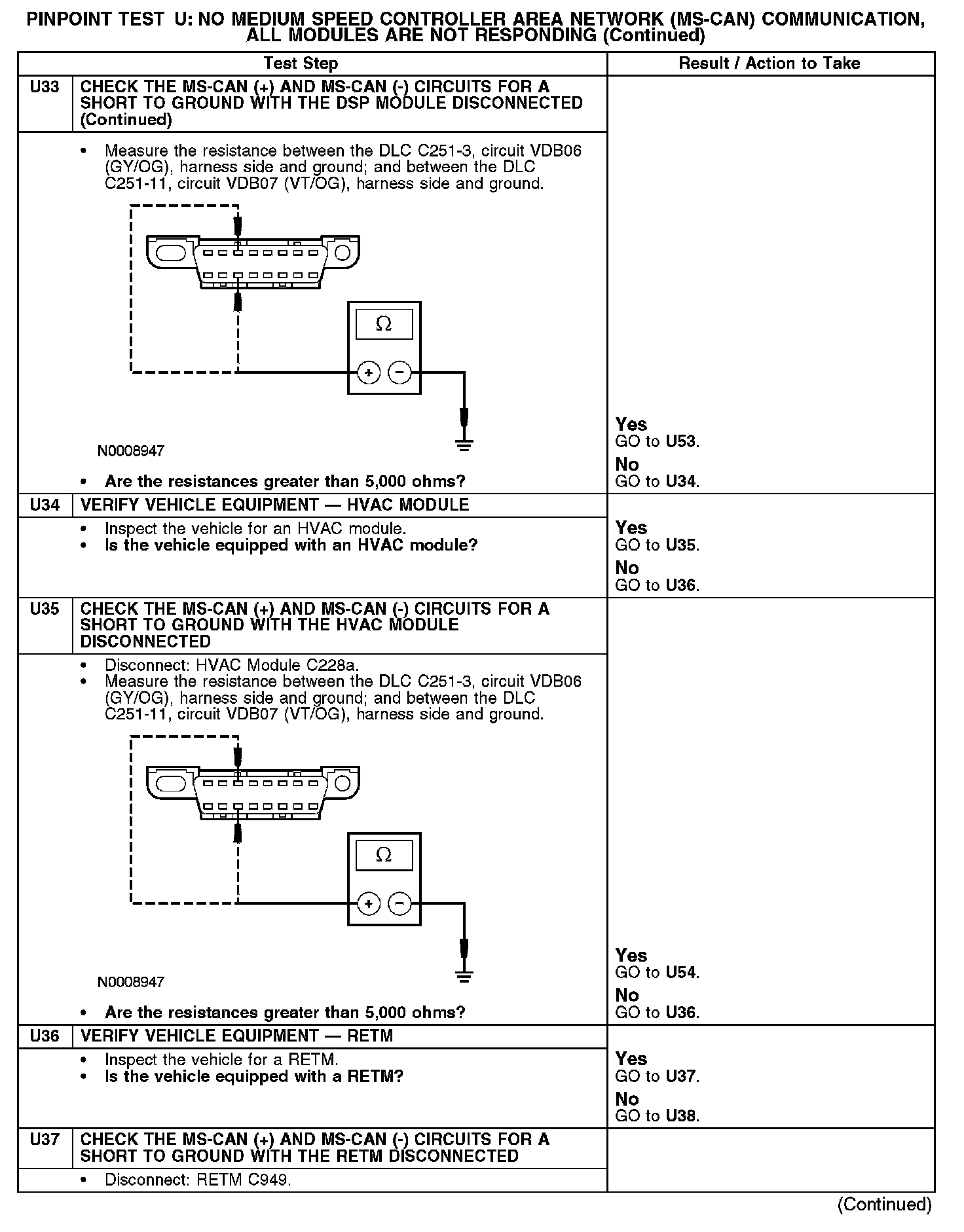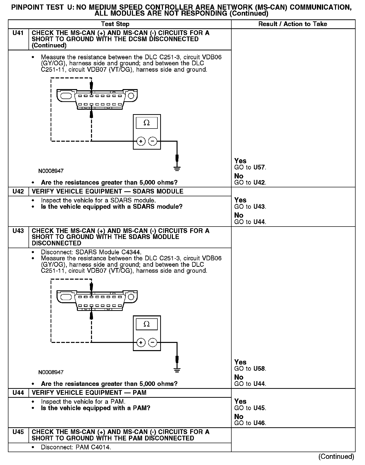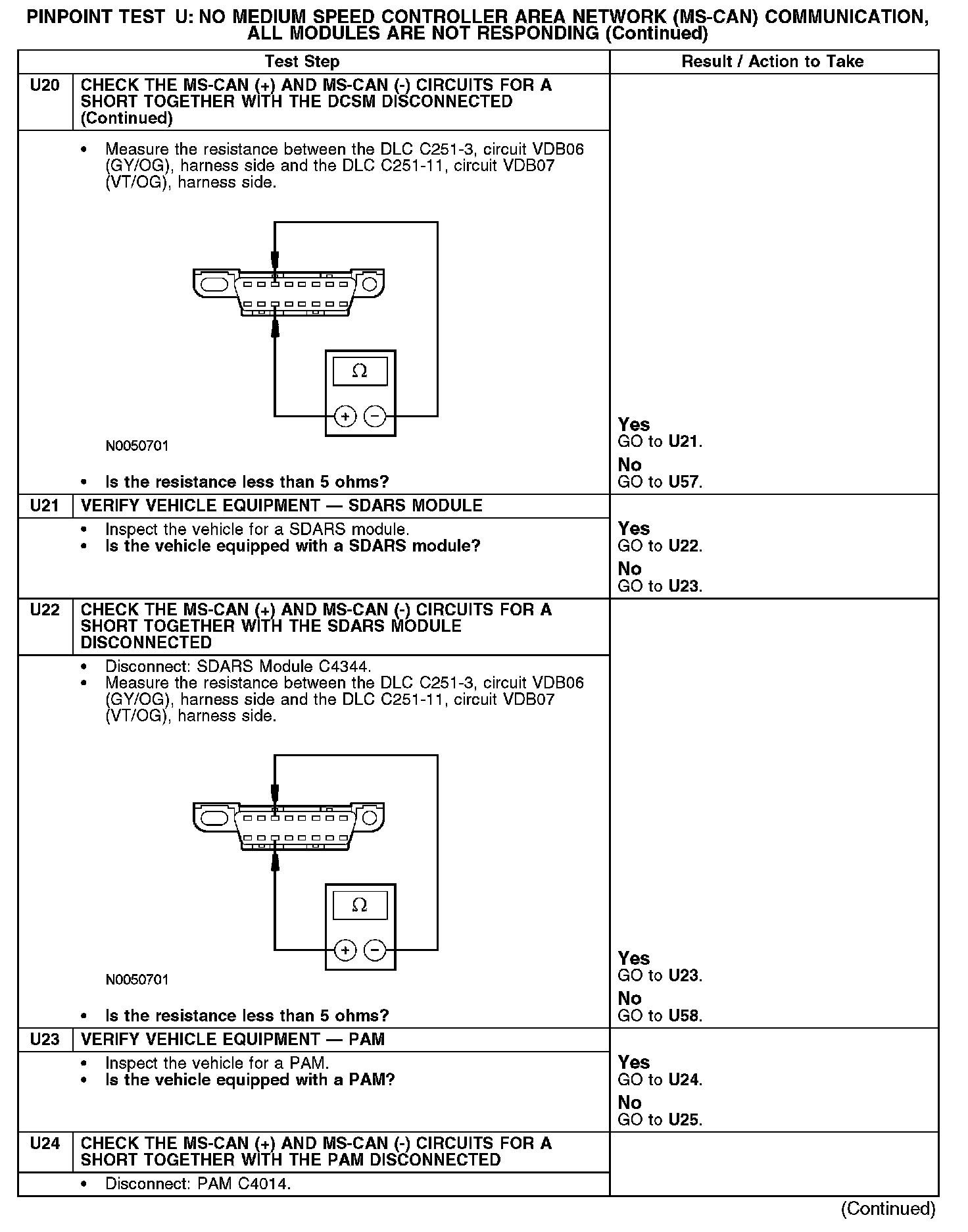 Test U: No Medium Speed Controller Area Network (MS-CAN) Communication, All Modules Are Not Responding