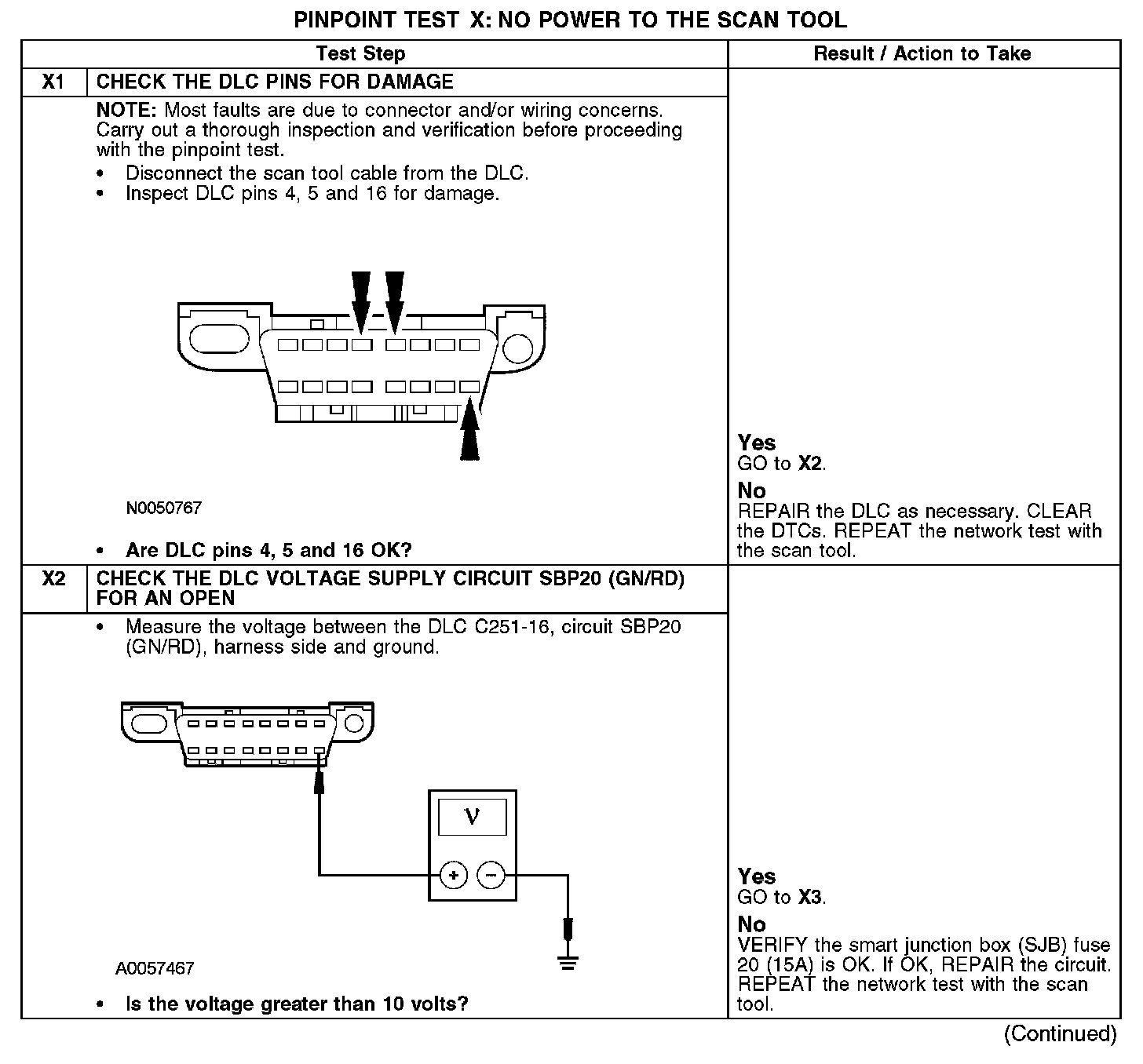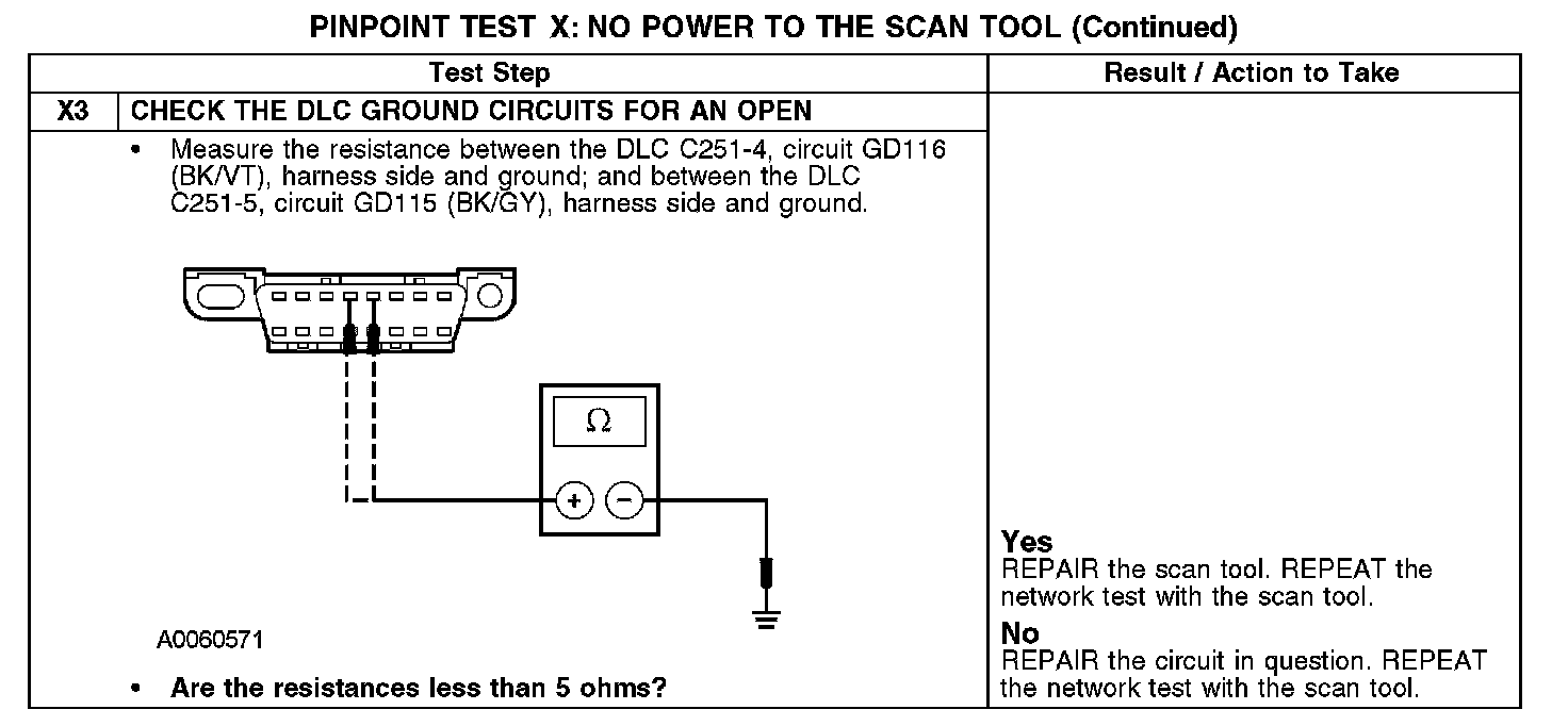 PINPOINT TEST X: NO POWER TO THE SCAN TOOLNormal Operation