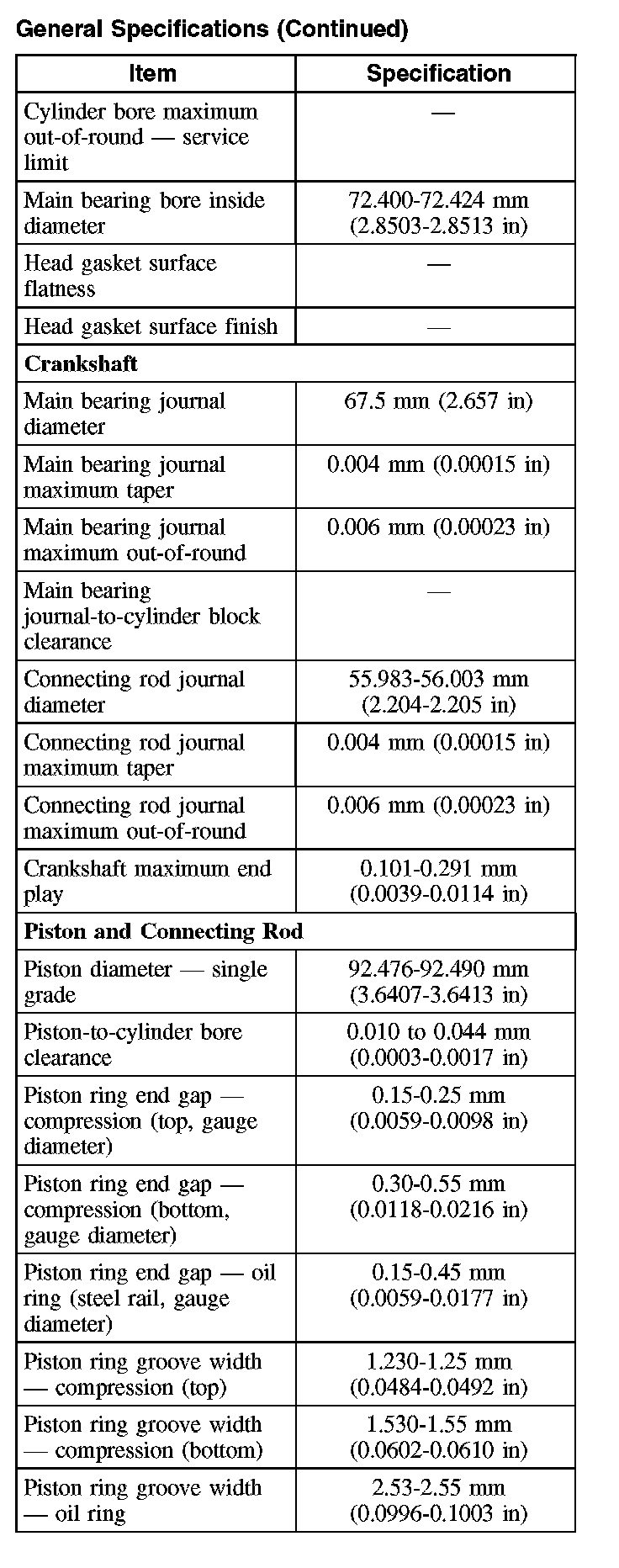 General Specifications (Part 2):