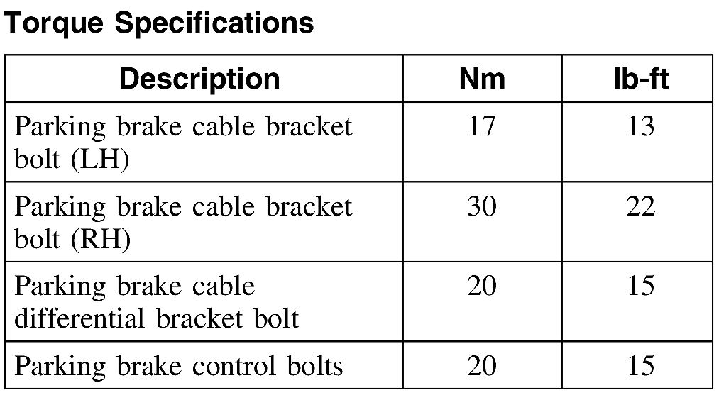 Parking Brake System: Specifications
