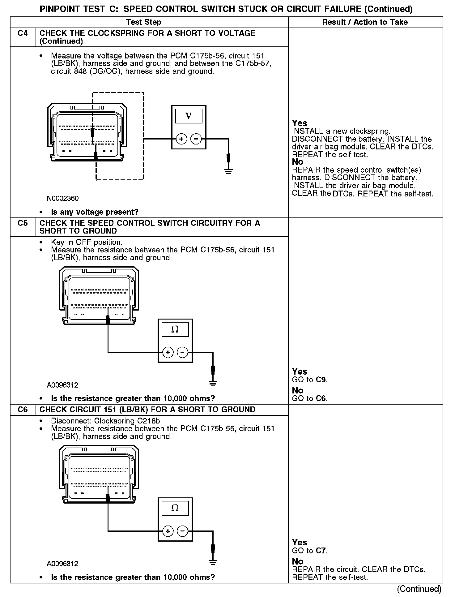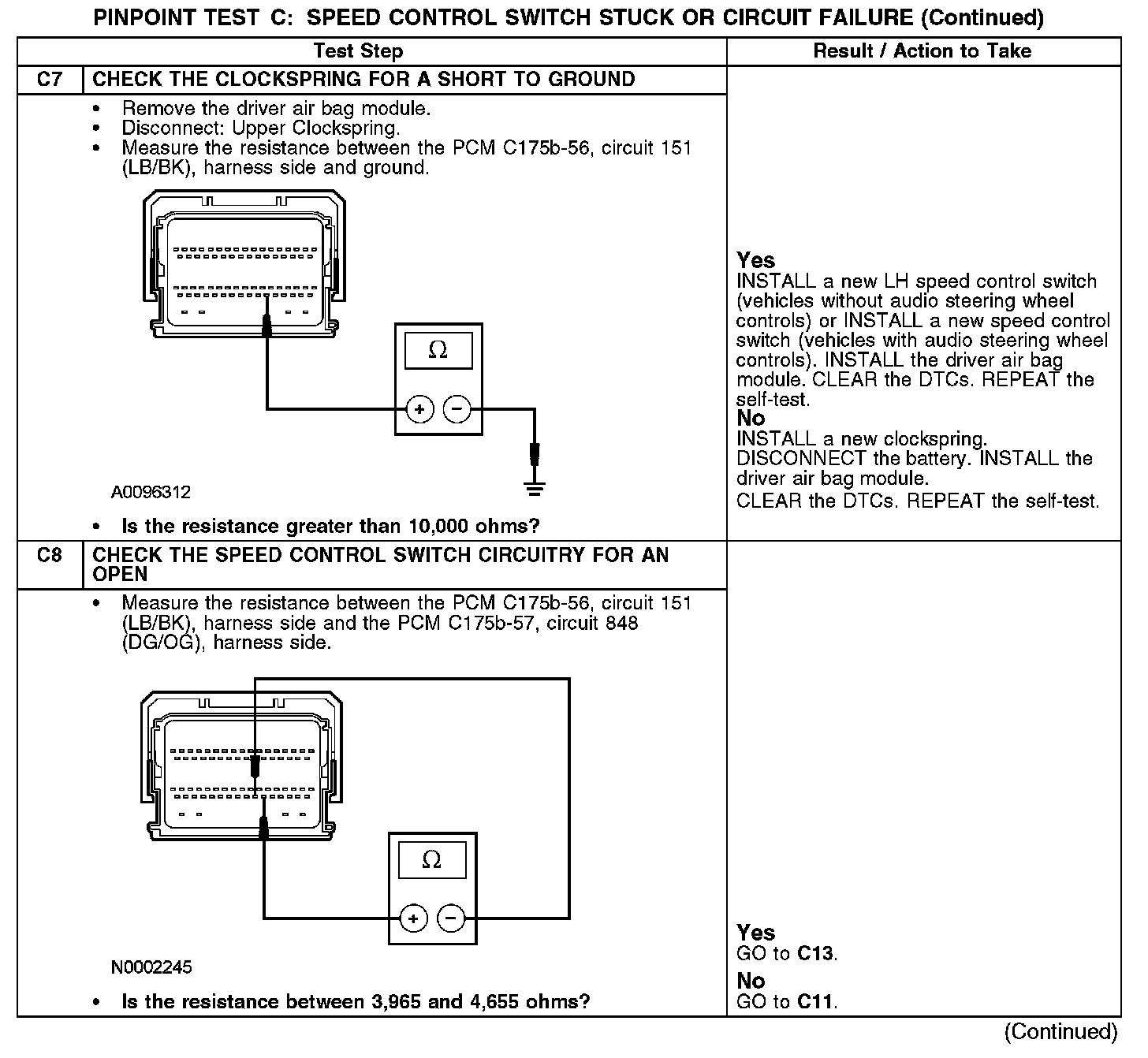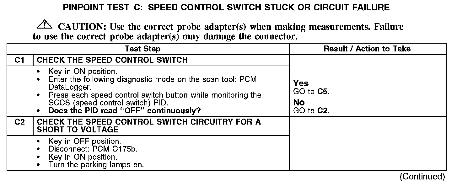 PINPOINT TEST C: SPEED CONTROL SWITCH STUCK OR CIRCUIT FAILUREC1-C2:
